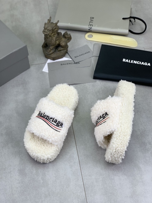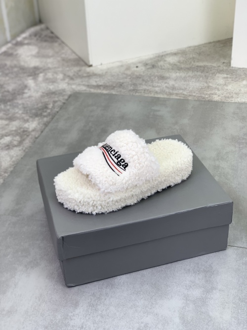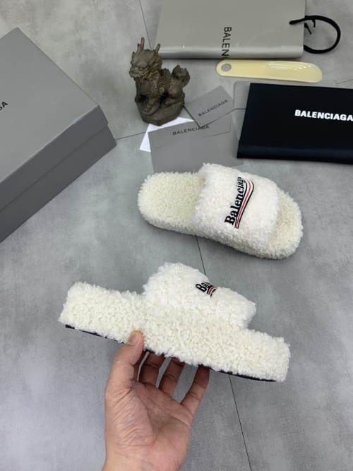 Tags: Balenciaga Fluffy Slippers, Designer Slippers, Embroidered Logo Slides, Teddy Bear Slippers, Thick Sole Slippers, Women's Fashion Slippers