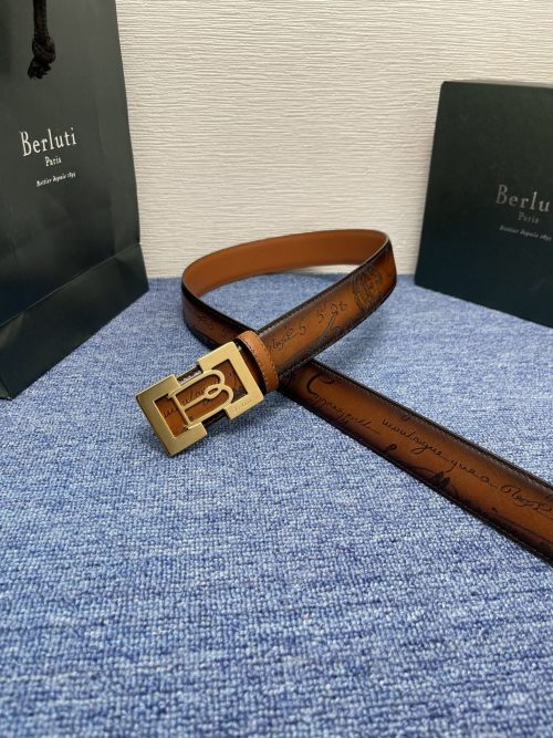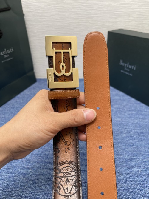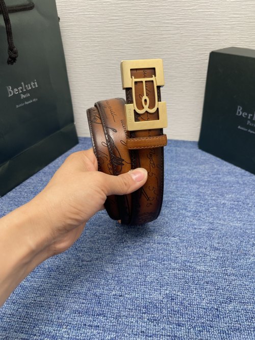 Tags: Berluti Leather Belt, Designer Leather Belt, Luxury Steel Buckle Belt, Patina Finish Belt, Stylish Belt, Venezia Leather Belt