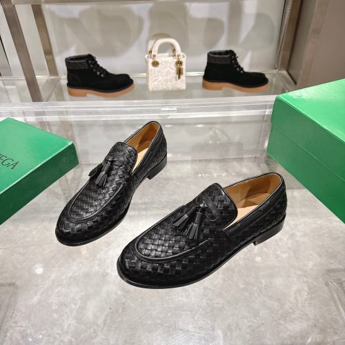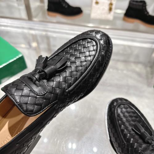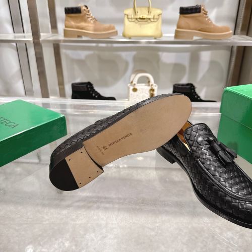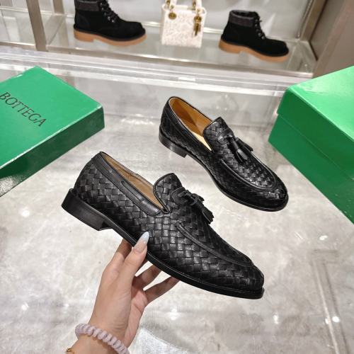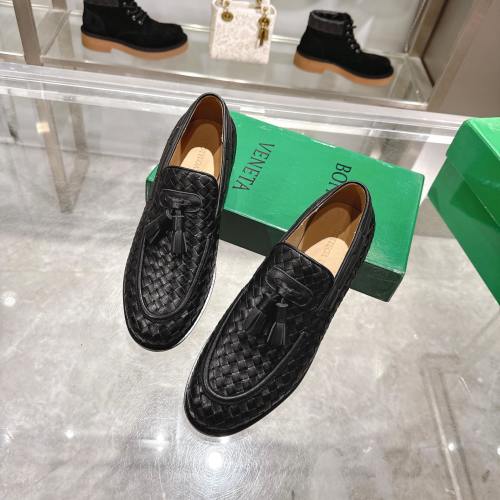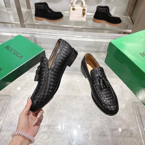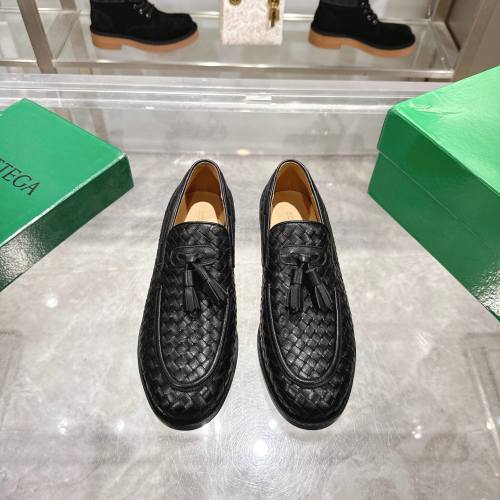 Step into style with these Bottega Veneta woven leather loafers. Featuring a round toe and leather sole, these shoes offer comfort and quality.