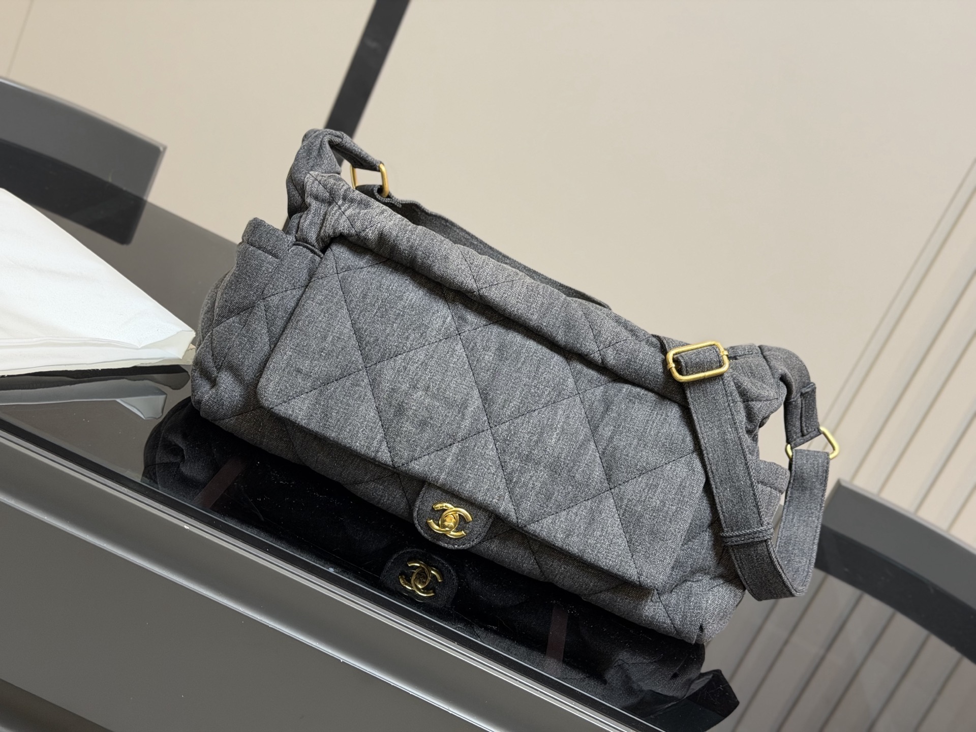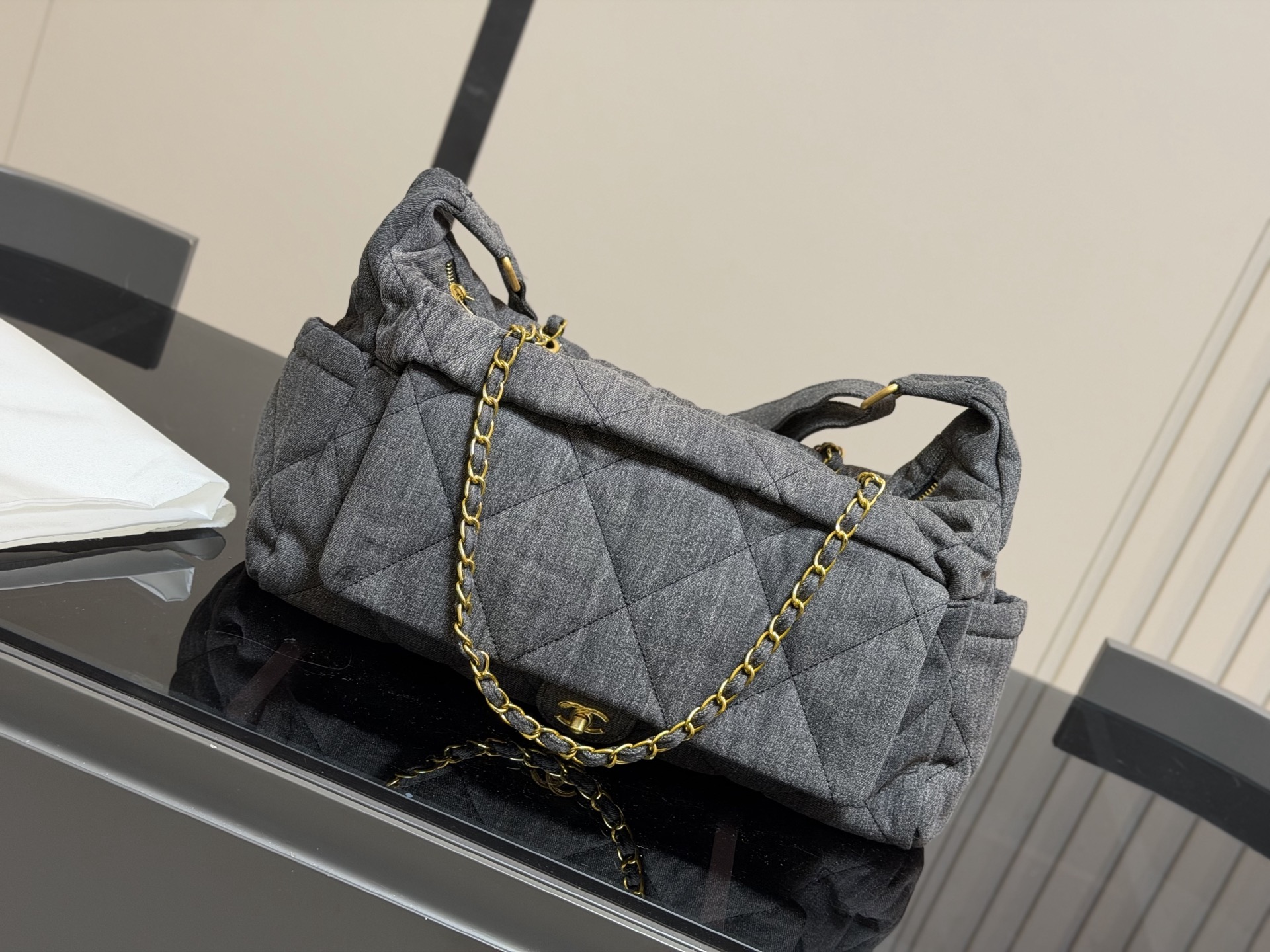 Tags: Chanel 22 Bag, Denim Quilted Handbag, Fashionable Women's Bag, Luxury Designer Bag, Shoulder Bag With Chain