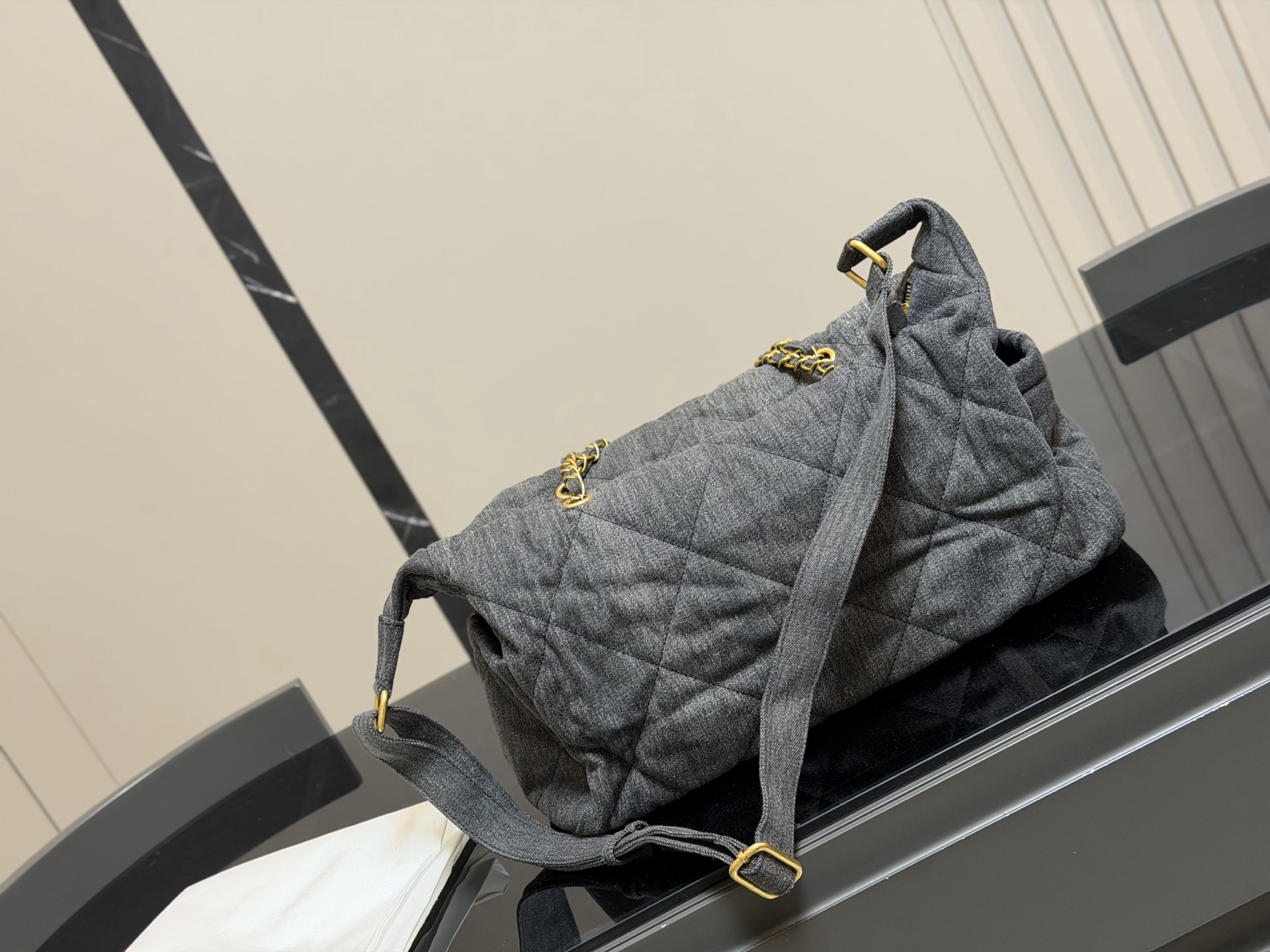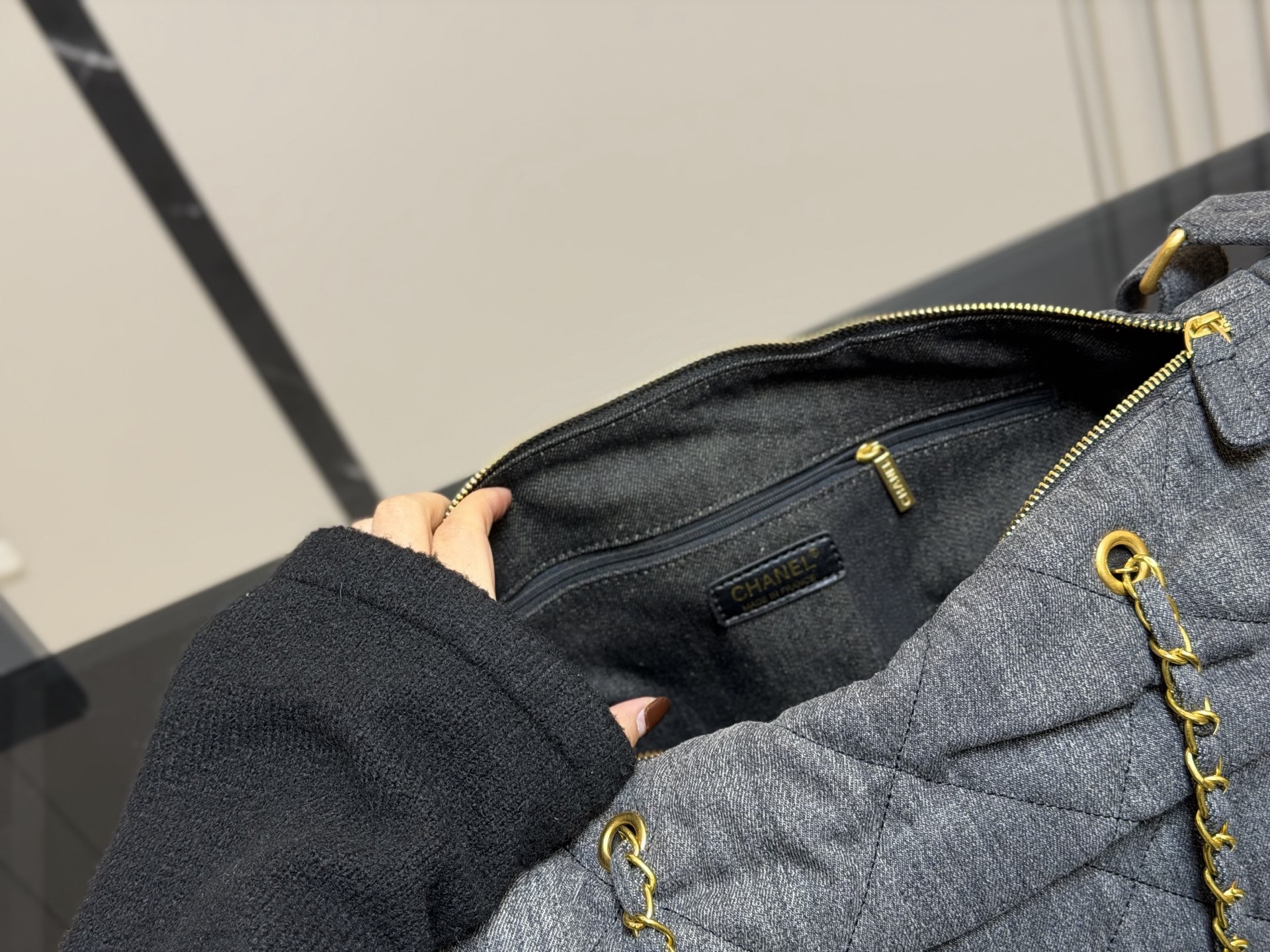Chanel 22 Handbag, Denim Quilted Design, Gold-Tone Metal Chain, 40 x 26 cm