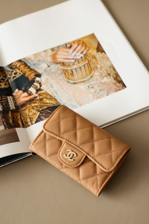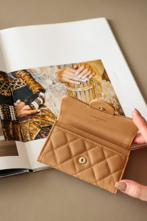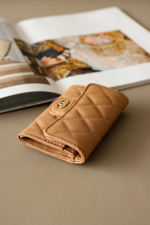 Chanel Classic Flap Bag Wallet Card pack Caramel All Steel