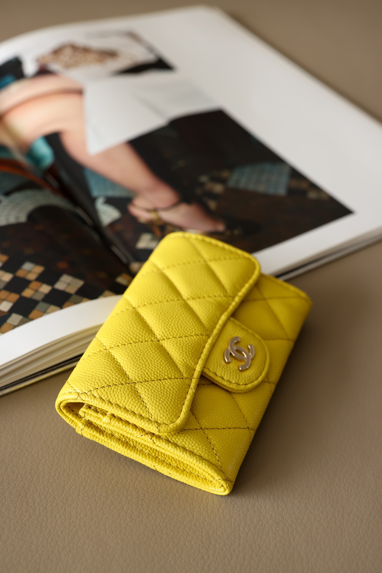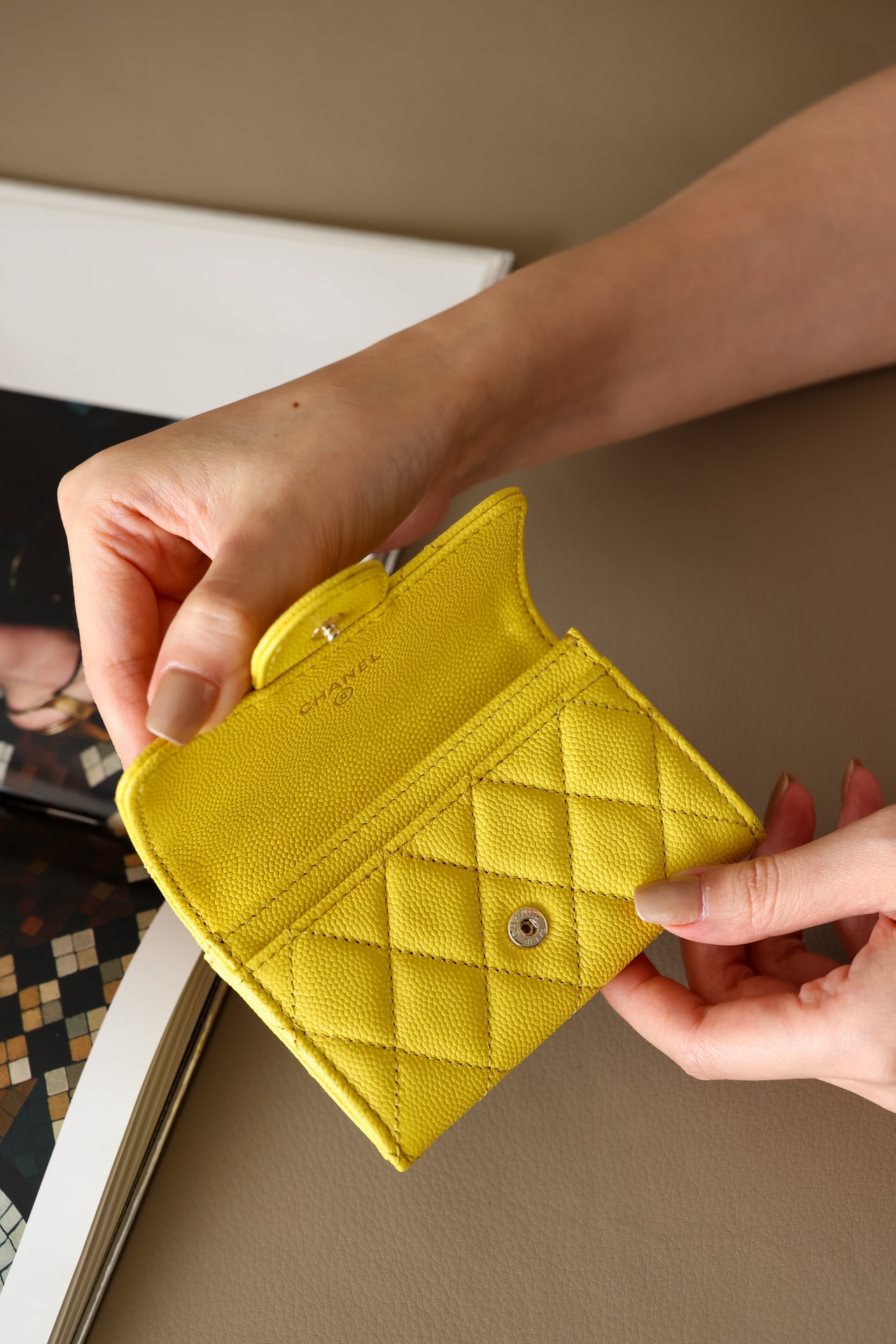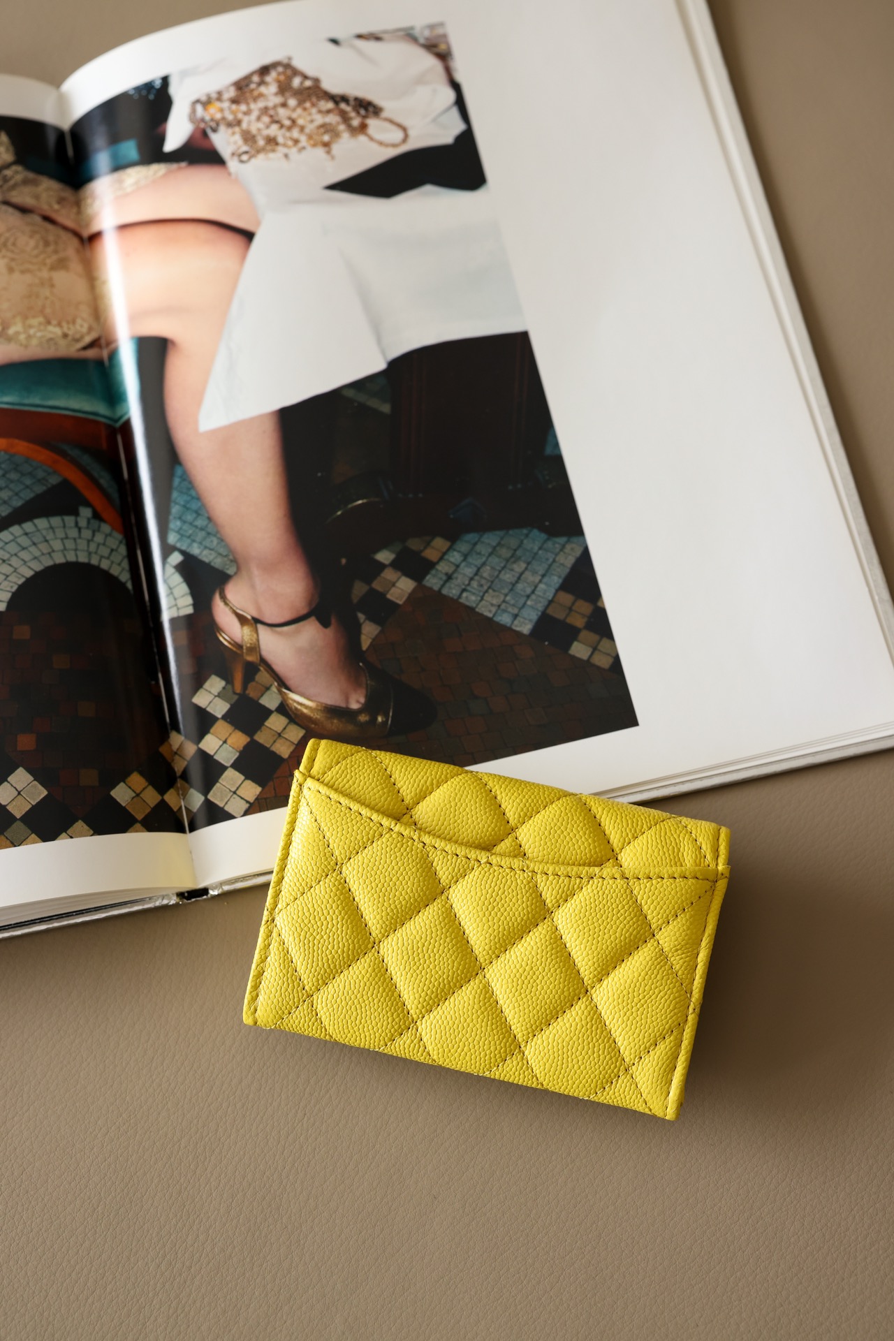 Chanel Classic Flap Bag Wallet Card pack Yellow All Steel