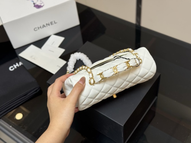 Tags: Chanel Mini Bag, Crossbody Bag, Designer Handbag, Quilted Leather Bag, Top Handle Bag, White Chanel Bag