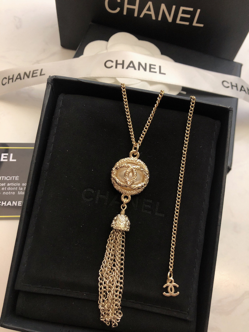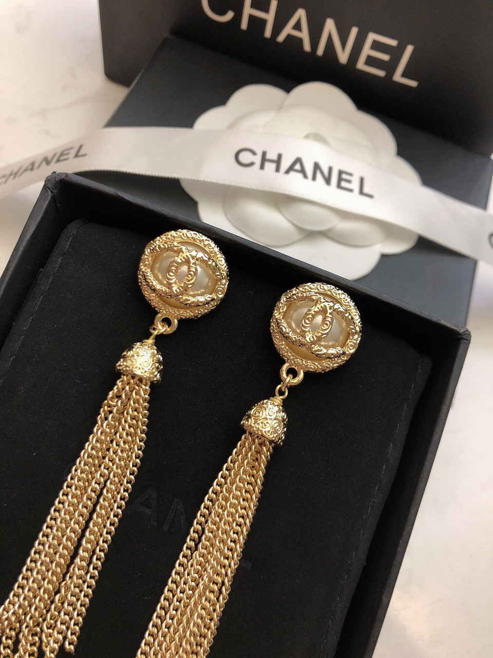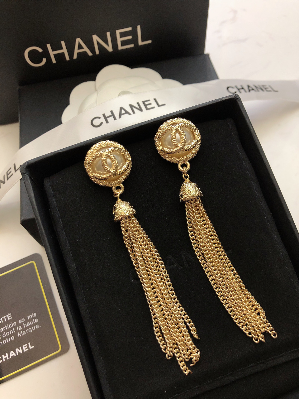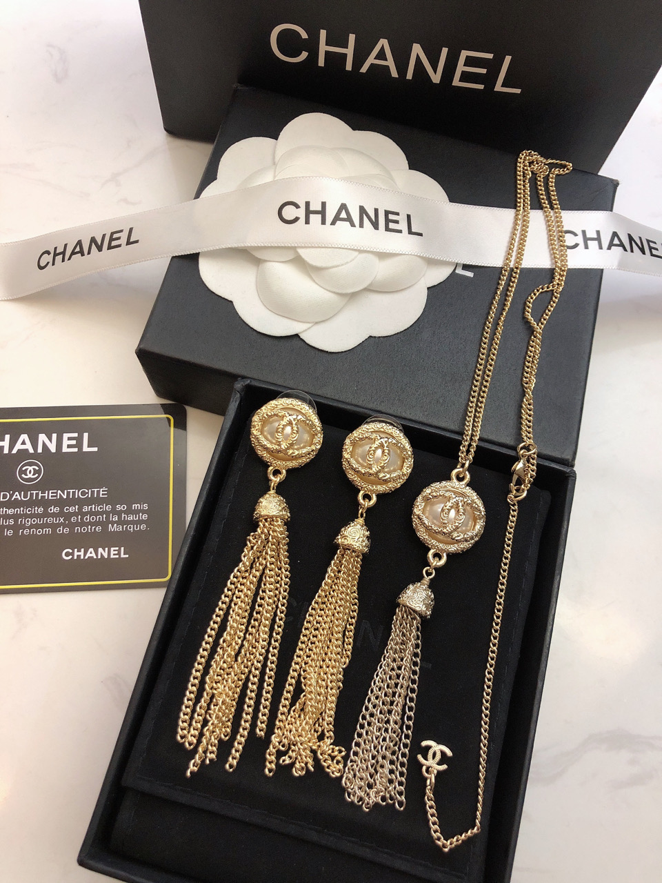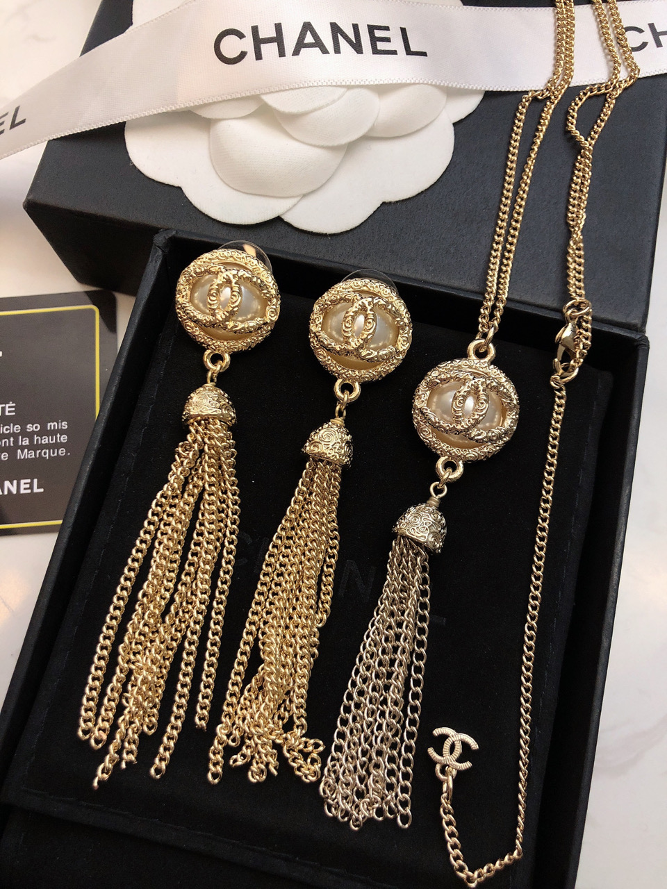 ❤️CHANEL Chanel's new earrings and necklace set 💫 Tassel earrings counter brass, very fresh earrings to modify the face shape, the upper body is very elegant, suitable for various occasions Hold live scenes 👸 Necklace 35355 Earrings 353