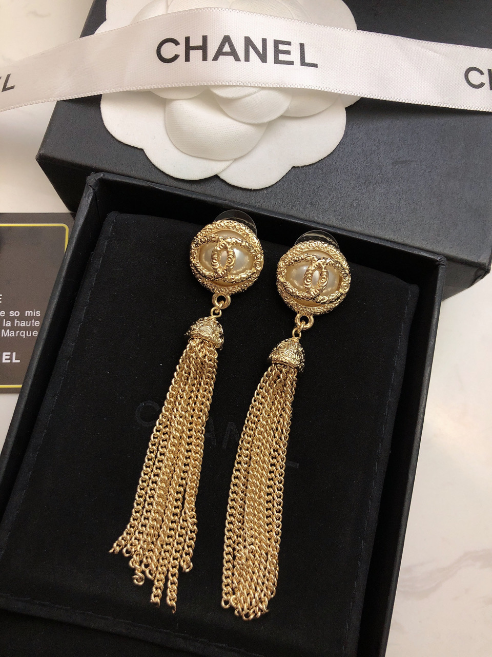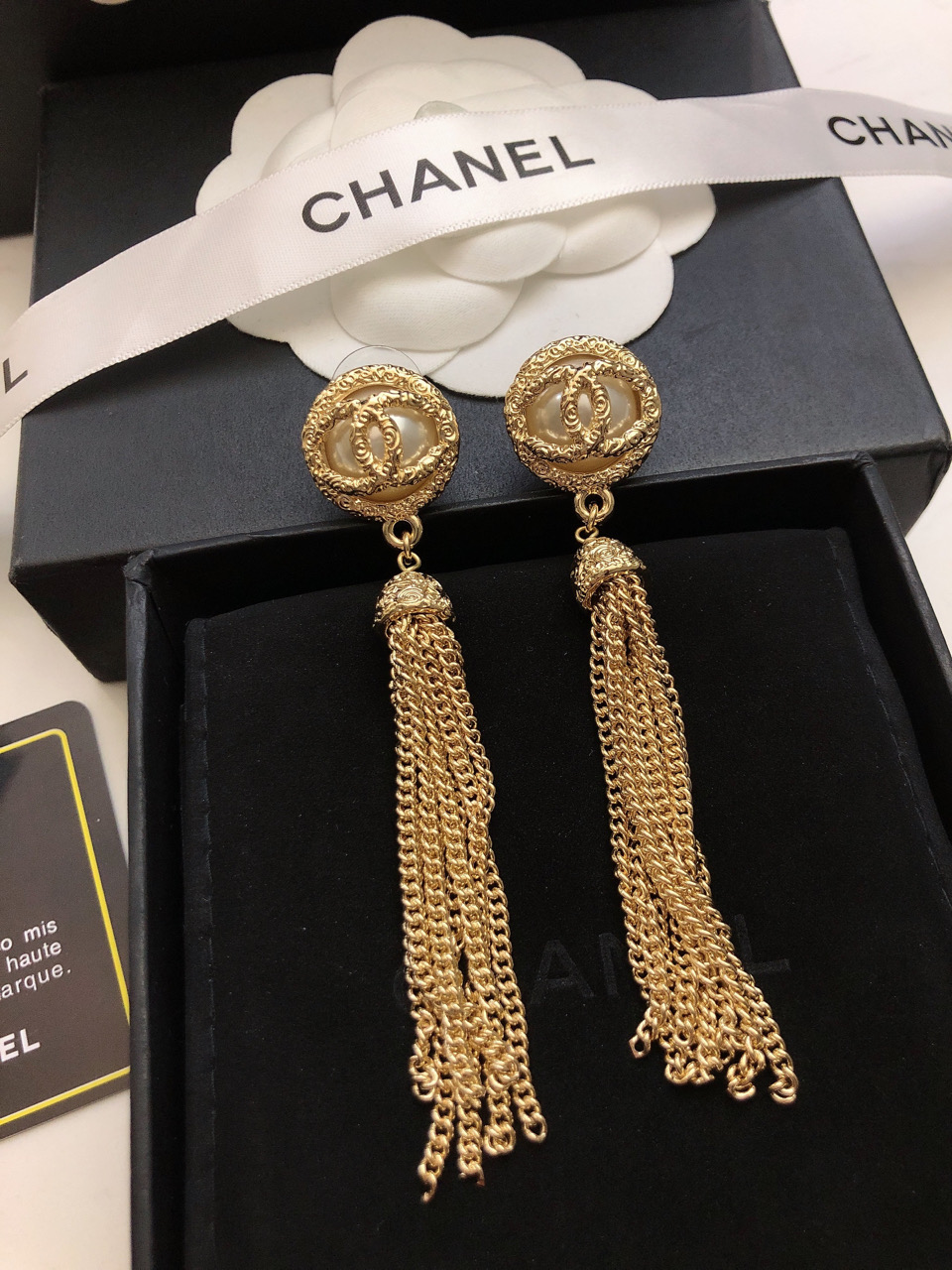 ❤️CHANEL Chanel's new earrings and necklace set 💫 Tassel earrings counter brass, very fresh earrings to modify the face shape, the upper body is particularly elegant, suitable for various occasions Hold live scenes 👸 Necklace 35355 Earrings 35360