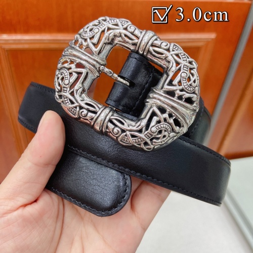 Elevate your style with this Chrome Hearts belt featuring a Celtic double dragon buckle and premium leather. Width: 3.0cm.