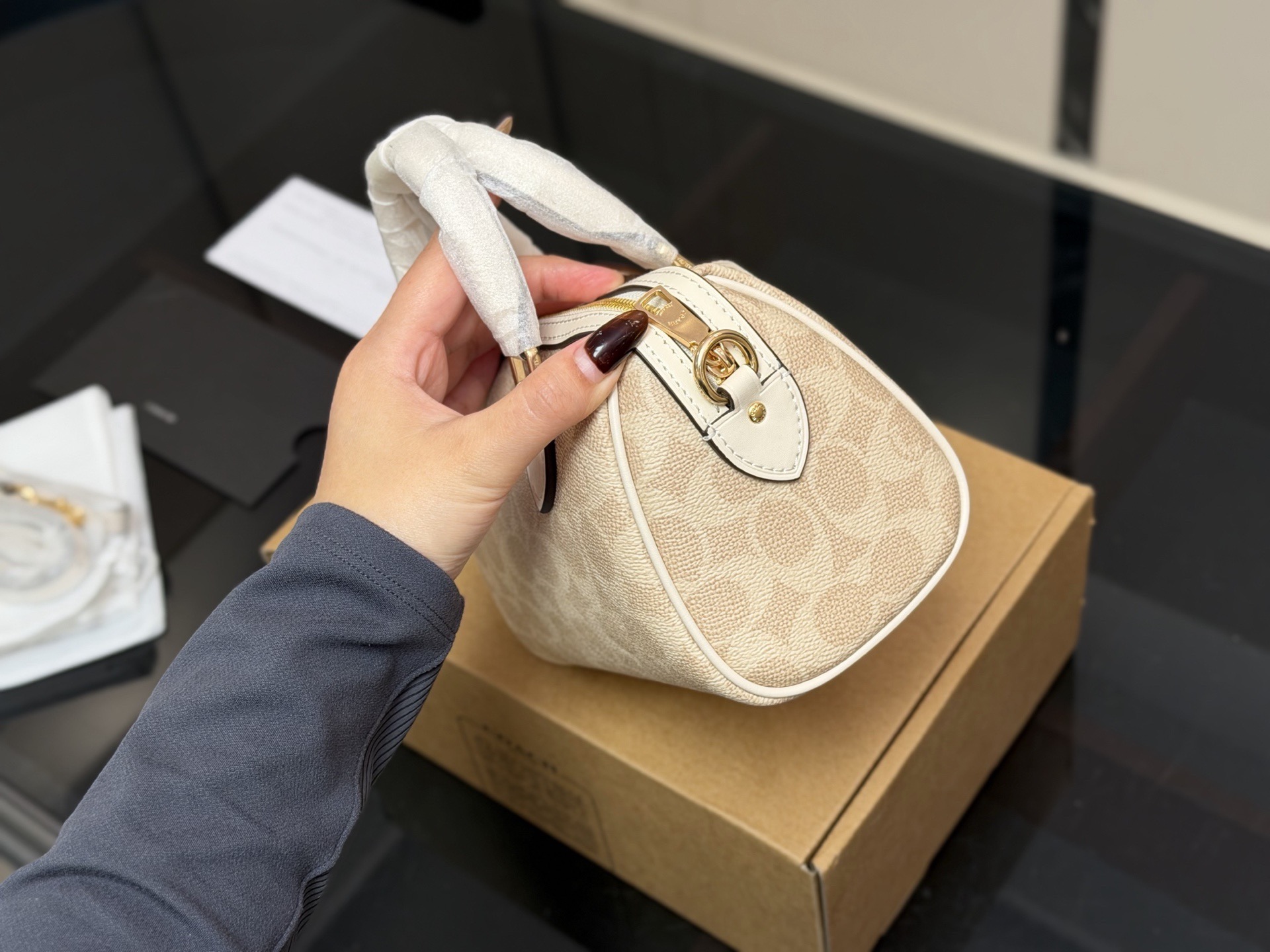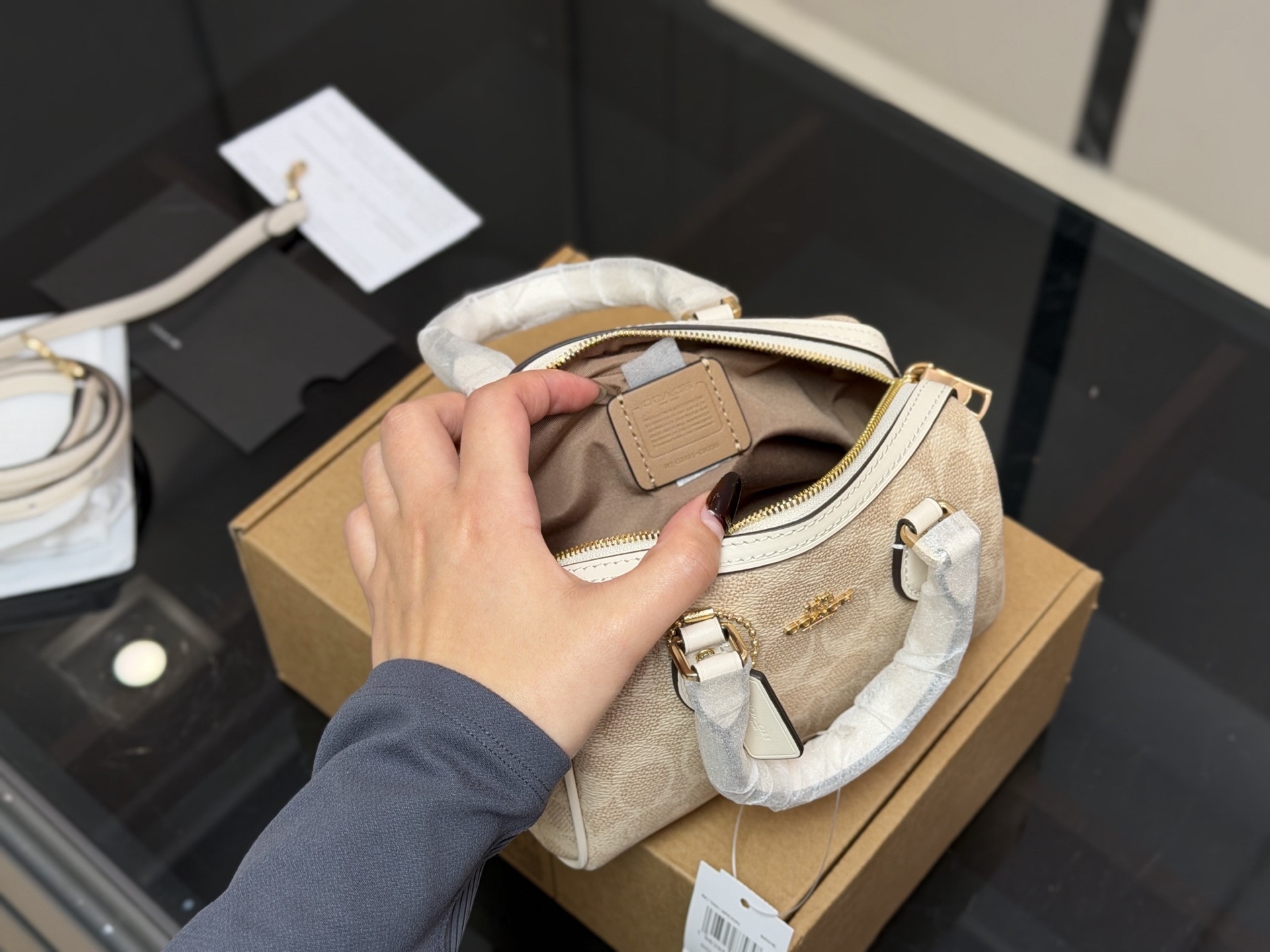 Introducing the adorable Coach Mini Pillow Tabby Crossbody Bag, a delightful addition to your accessory collection. This mini Boston bag combines Coach's classic design with a trendy, compact size.