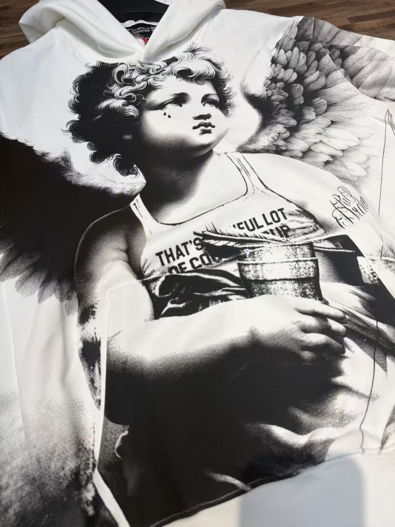 This eye-catching hoodie features a unique design blending elements of American streetwear with an artistic angel tears graphic. Perfect for those who appreciate comfort and individuality.