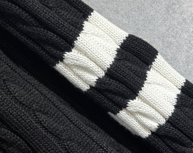 Tags: Cable Knit Sweater, Crew Neck Sweater, Long Sleeve Sweater, Striped Sleeve Sweater, Winter Sweater, Wool Blend Sweater