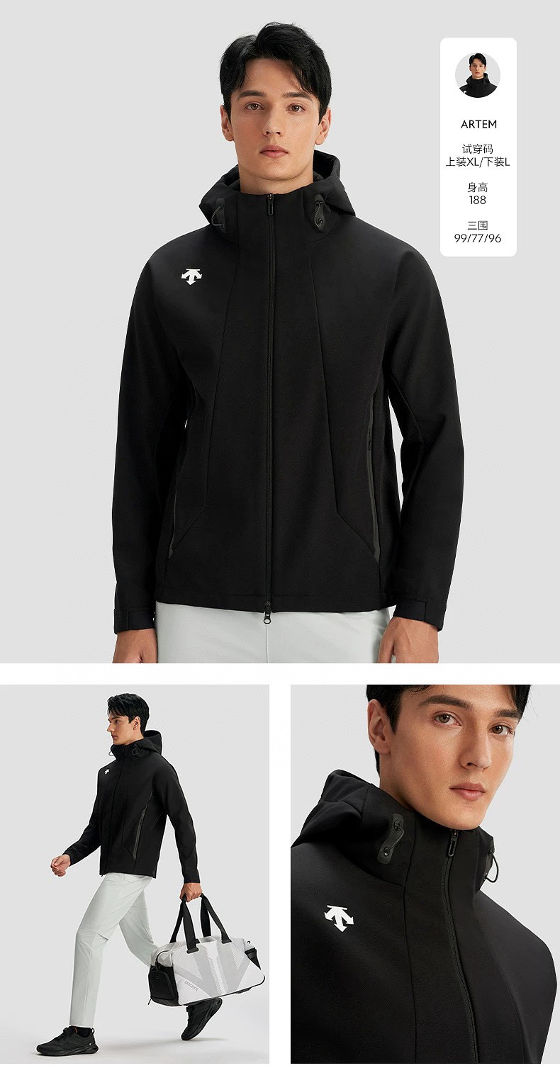 Tags: Descente Softshell Jacket, Hiking Jacket Men, Men's Fleece Jacket, Outdoor Softshell Coat, Warm Winter Jacket, Windproof Hooded Jacket