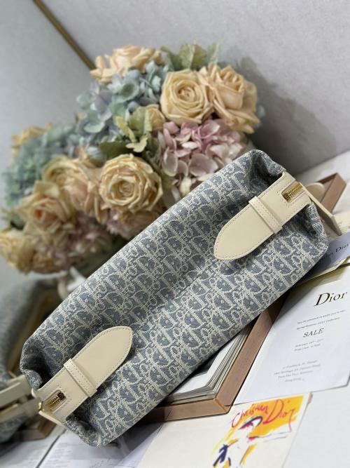 Dior D-Journey Medium Oblique Printed Handbag Gray with Leather Accents