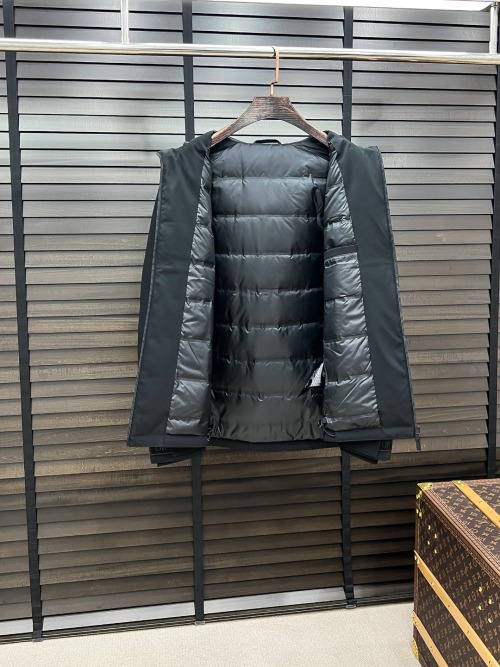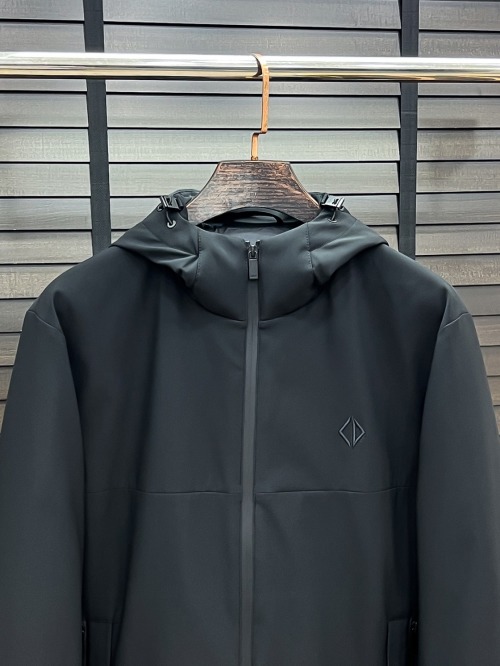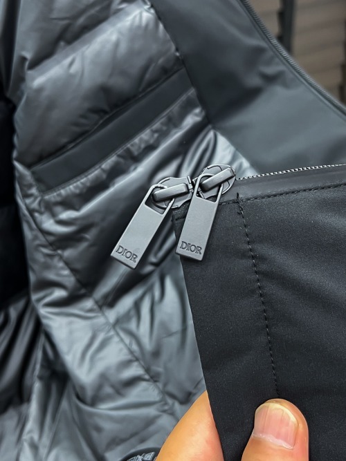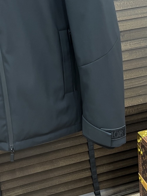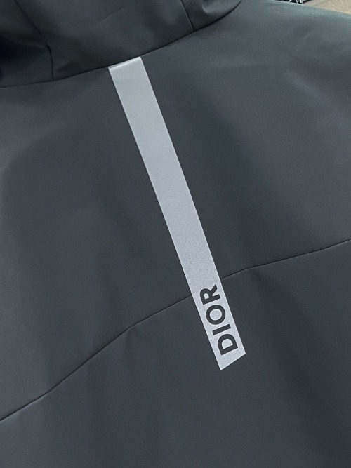This DIOR hooded down jacket is a versatile addition to any wardrobe, combining high-fashion design with functional features for everyday wear.