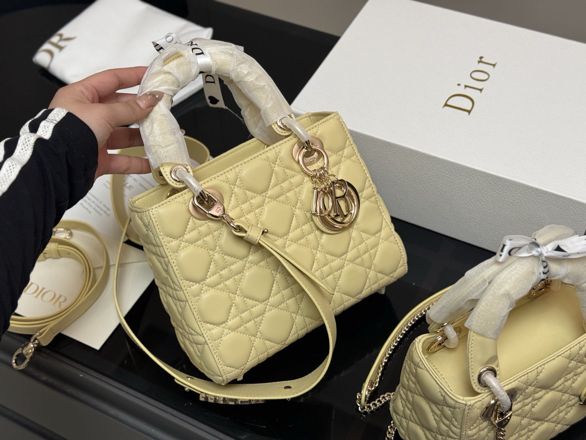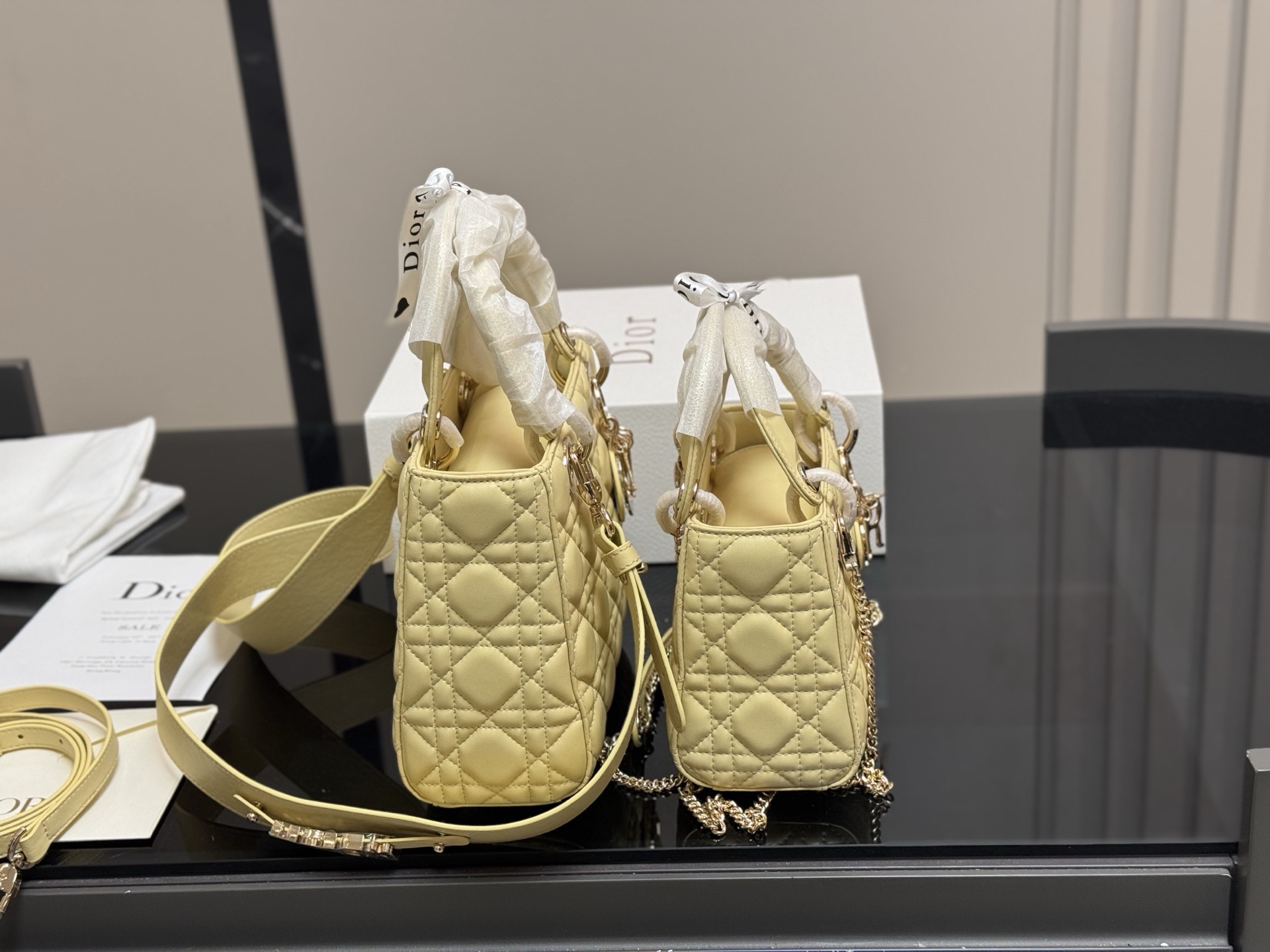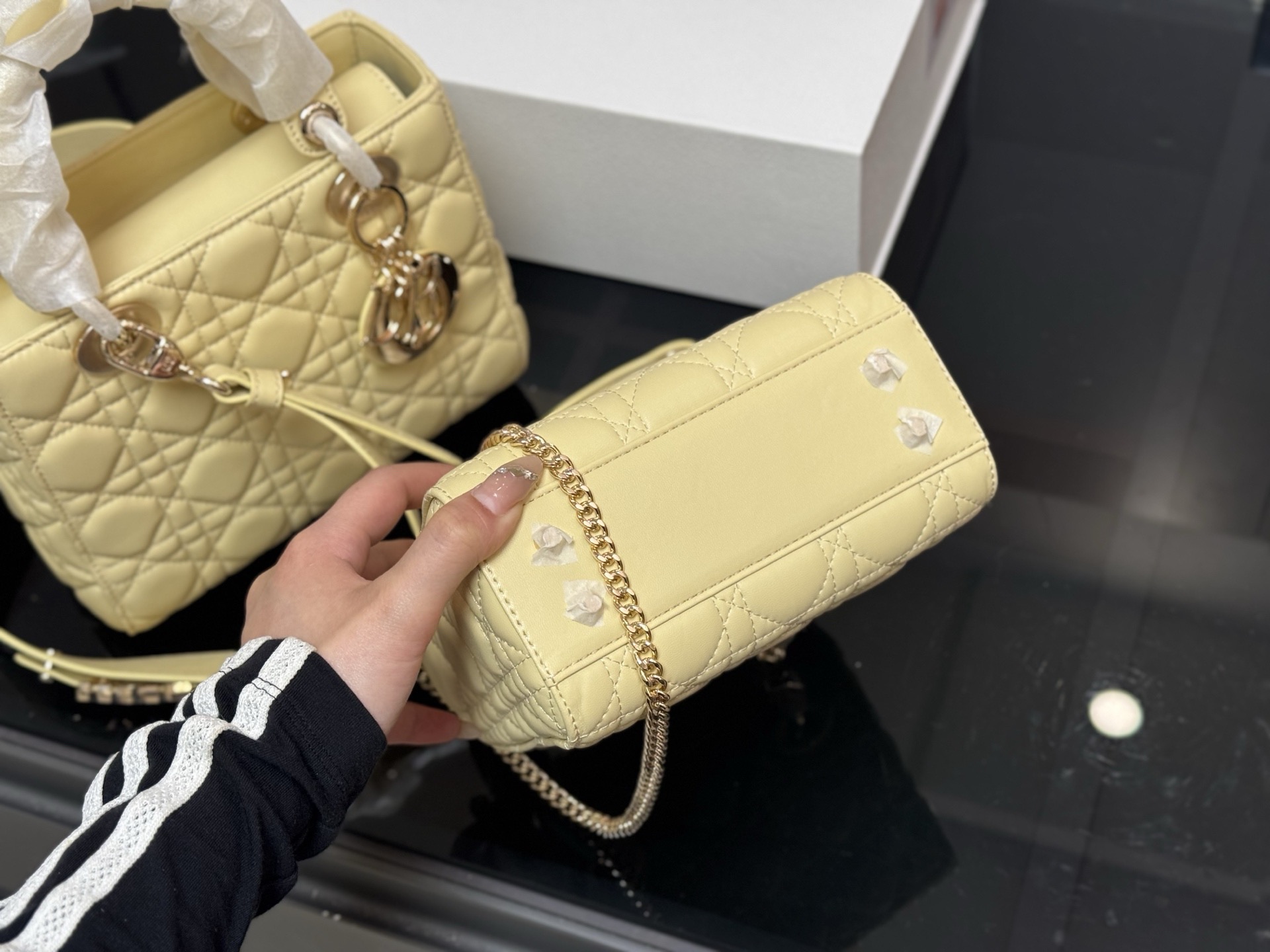 Dior Lady Dior Lambskin Bag with Shoulder Strap - Pastel Yellow