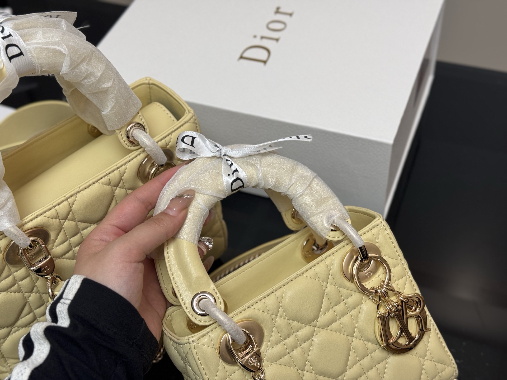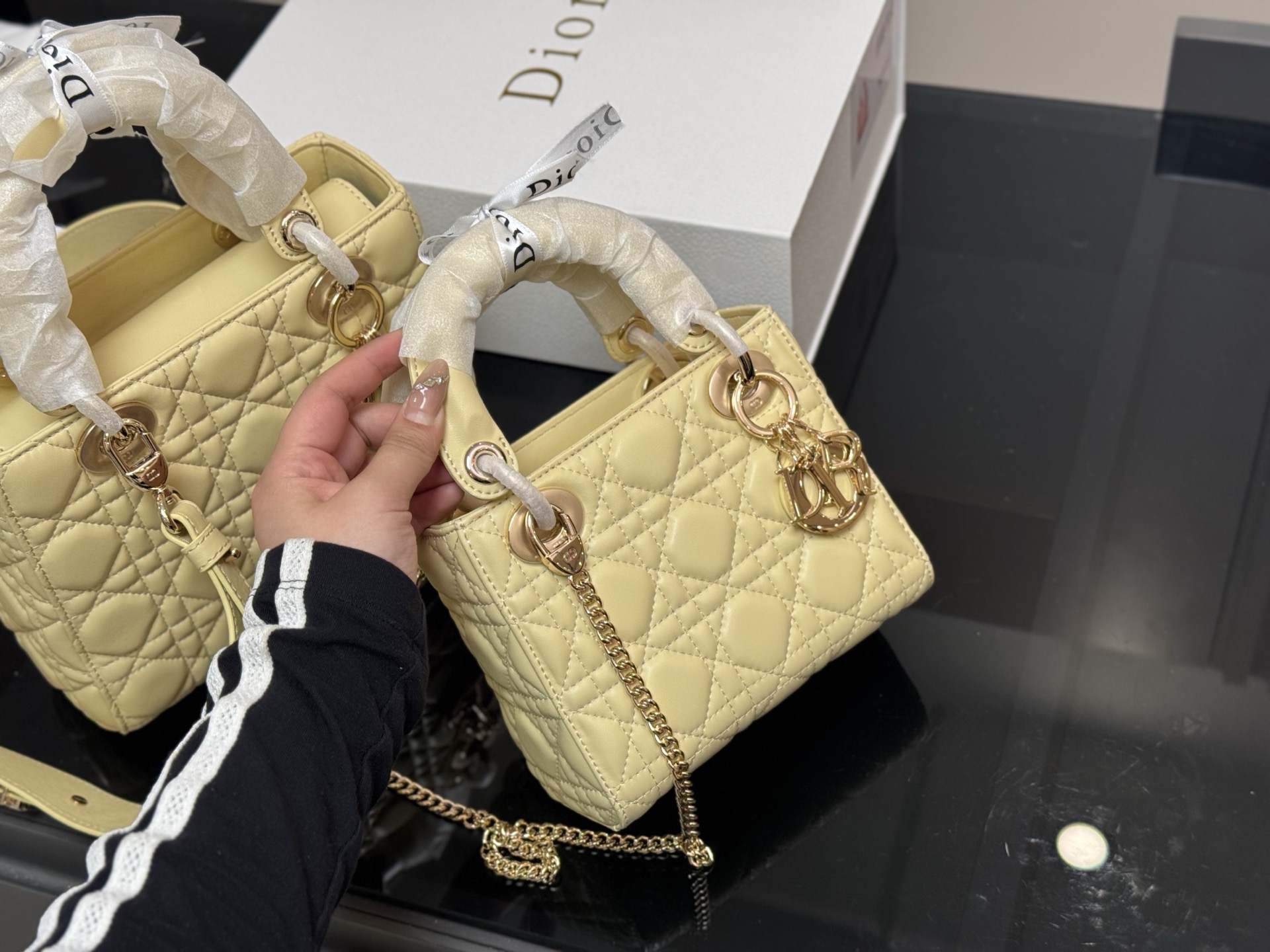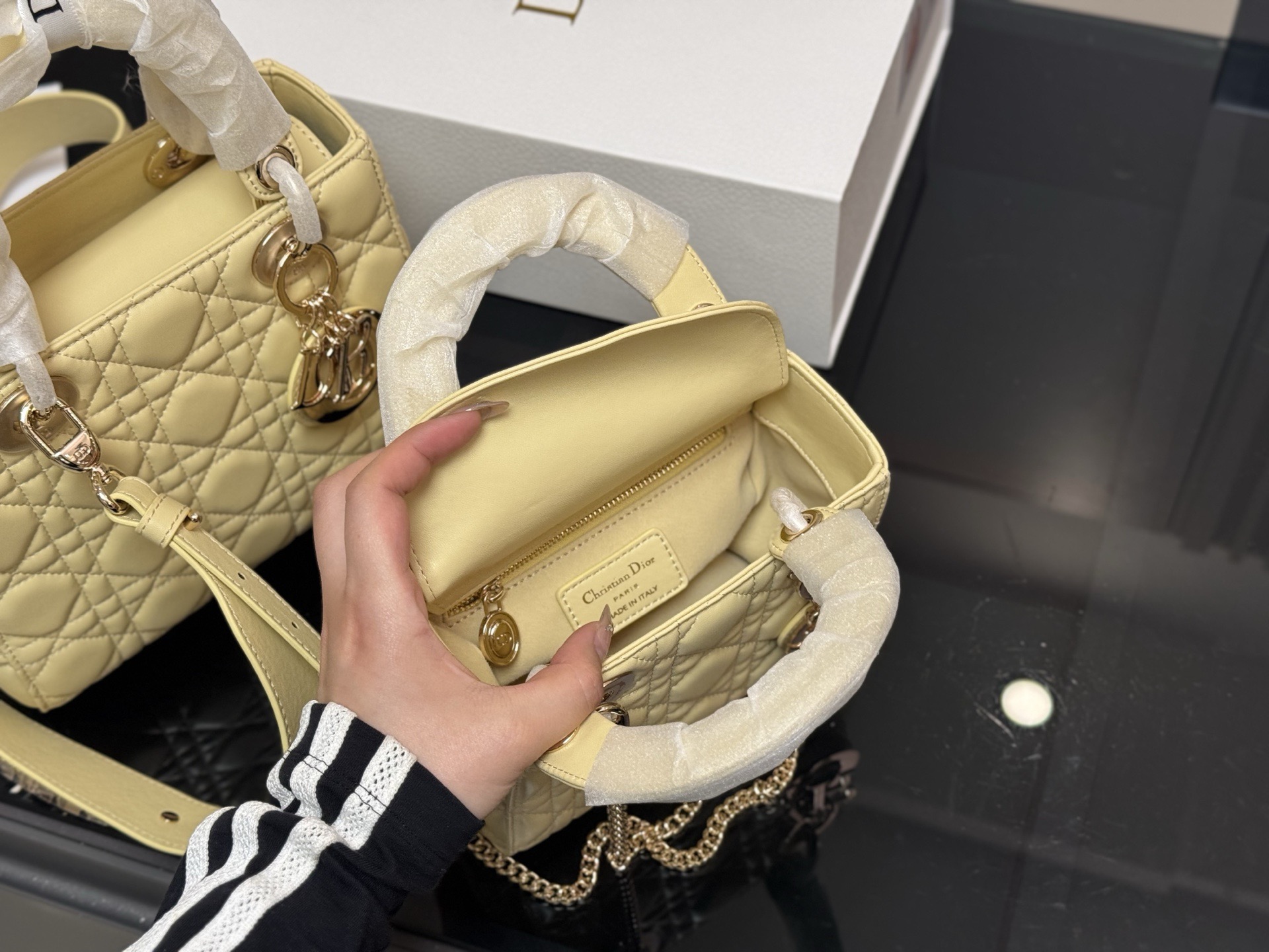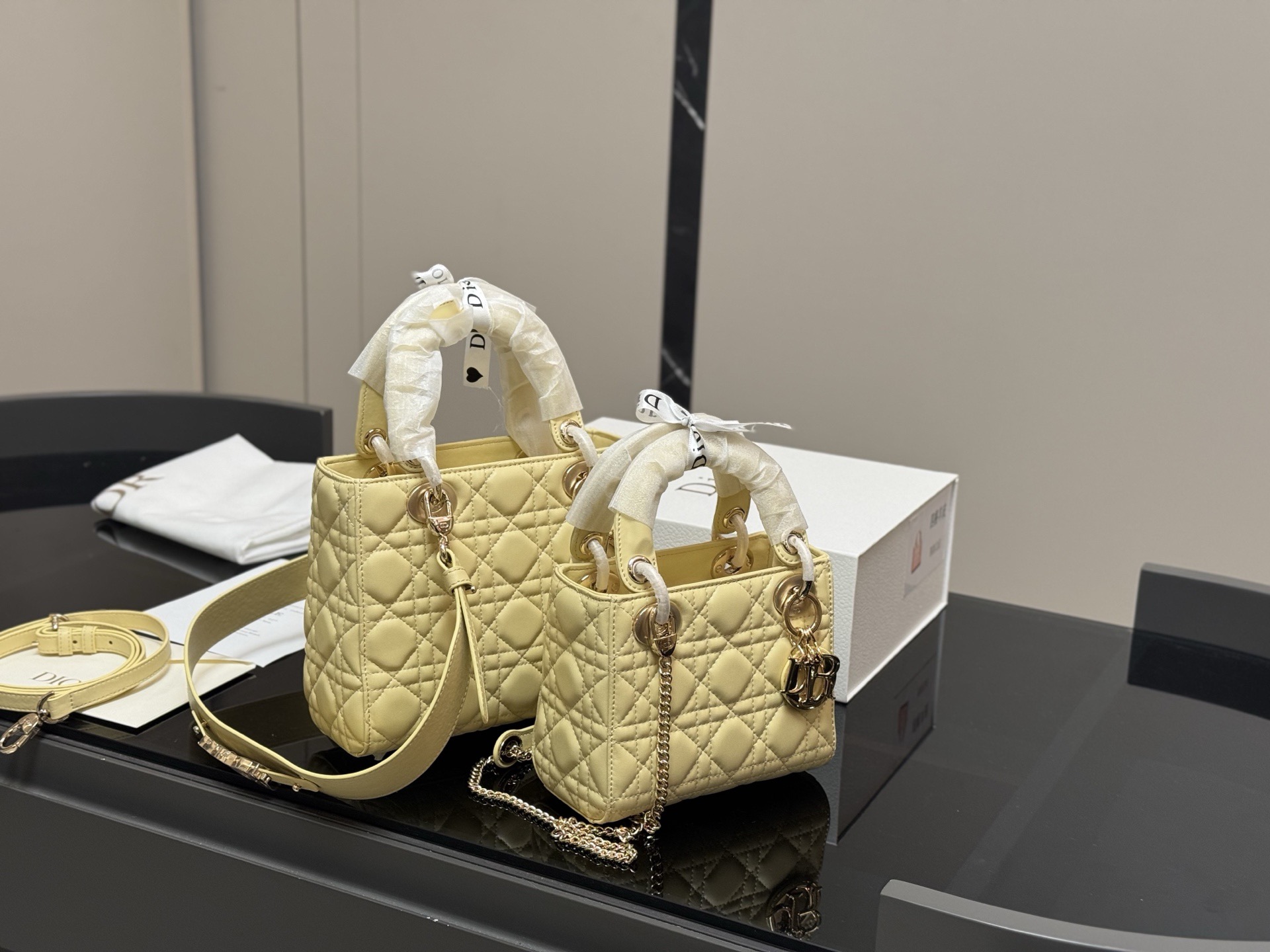 Dior Lady Dior Lambskin Bag with Shoulder Strap - Pastel Yellow