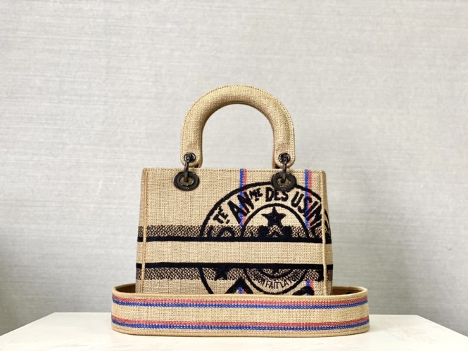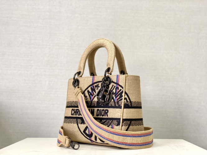 New color [rice ephedra badge embroidery] ~❀Dior͙ new Dior bag! This Lady D-Lite is so attractive. It is made of canvas material with exquisite embroidery and hardware with a gun buckle. It is simply a fairy bag. It is dignified and big.