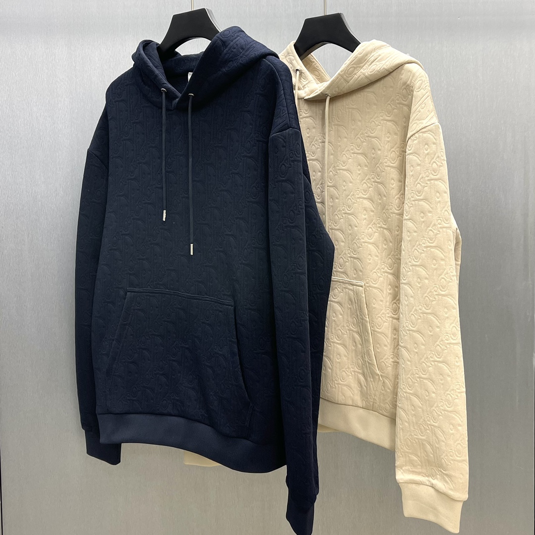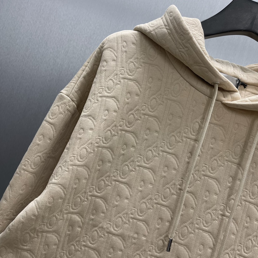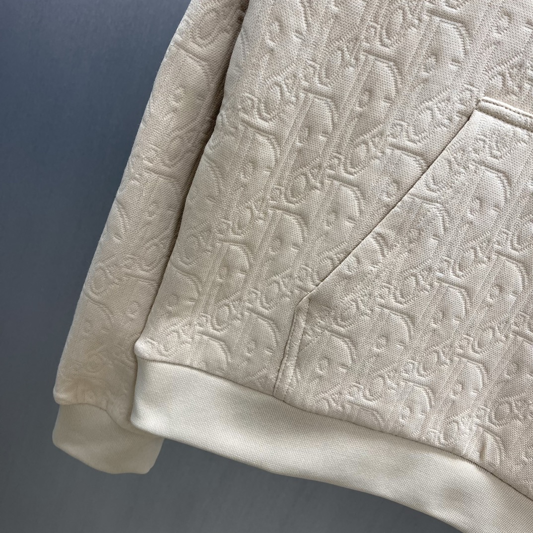 Dior Oblique Beige Quilted Hoodie, Casual Style with Elegant Touch S-XL