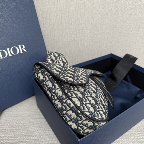 Dior Oblique Canvas and Black Grained Leather Saddle Bag with Buckle Detail