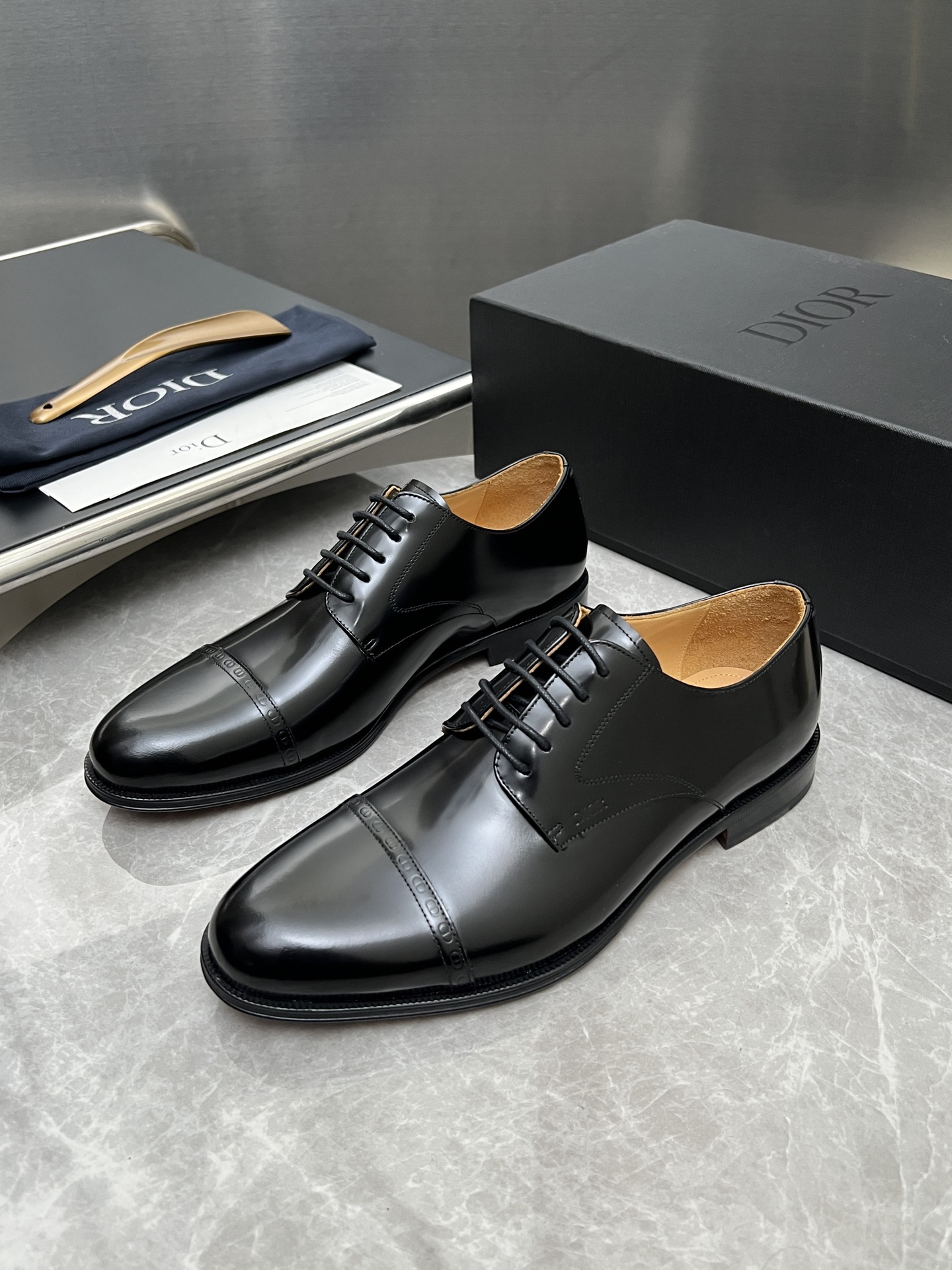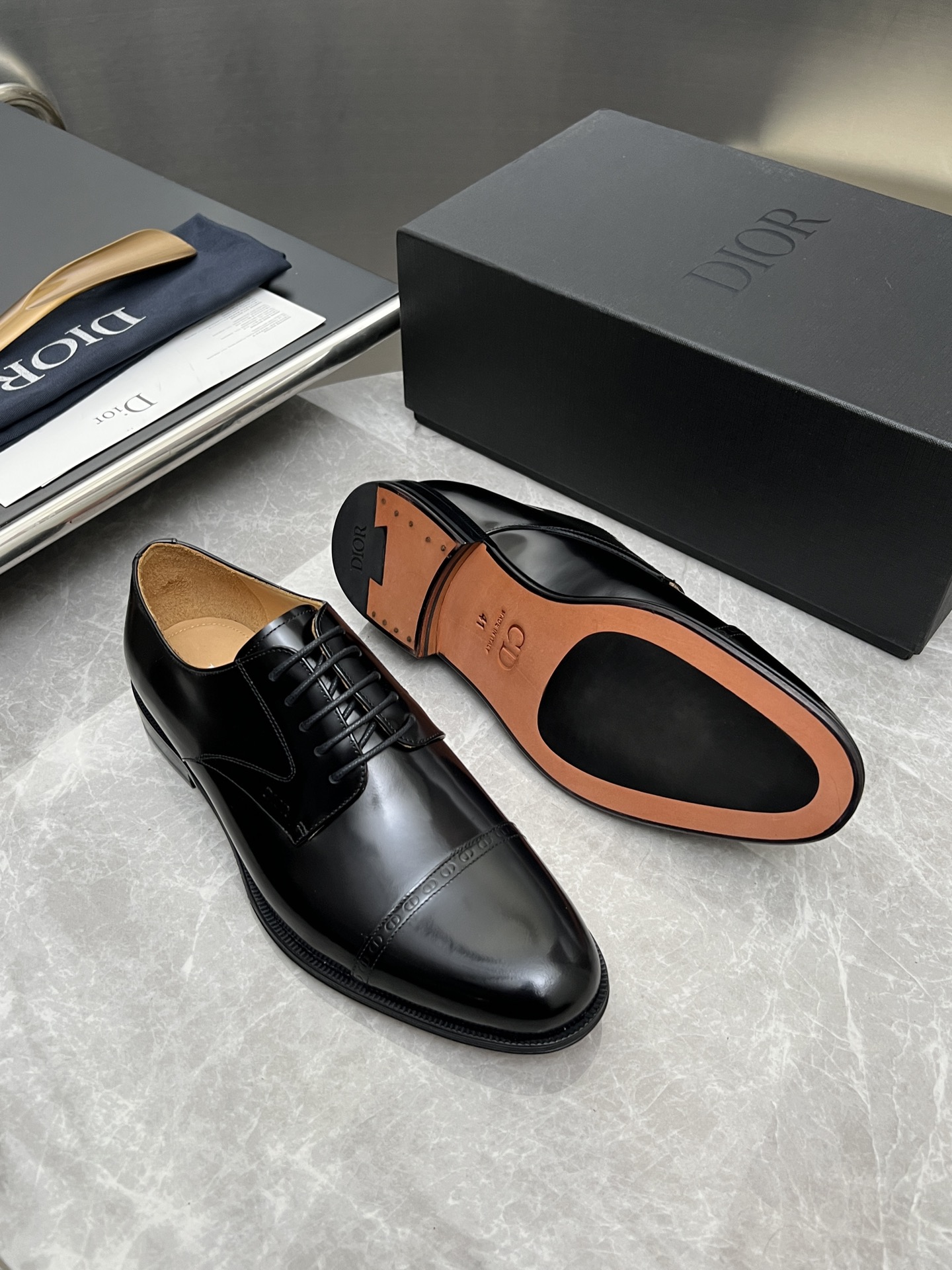 Dior Timeless Derbies: Elegant Black Leather Dress Shoes for Men (Sizes 39-44)