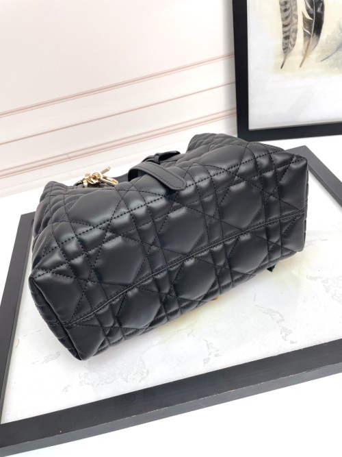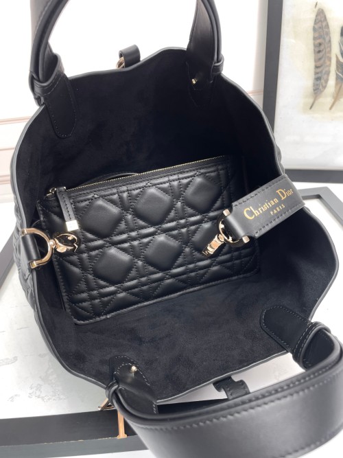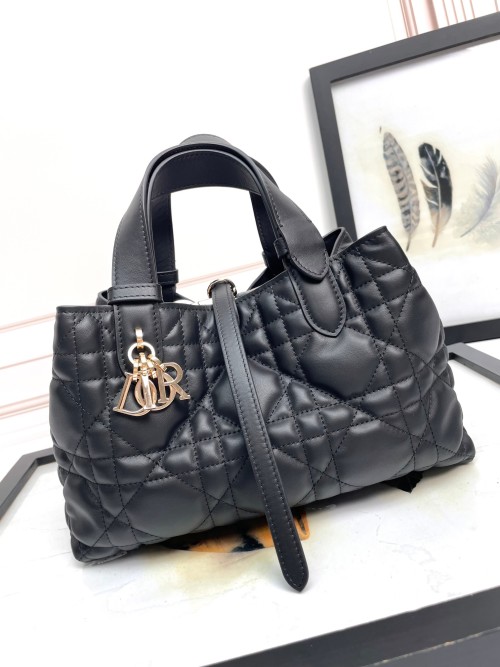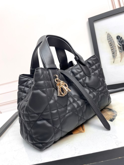 Tags: Adjustable Strap Bag, Black Lambskin Handbag, Cannage Stitching Bag, Designer Tote Bag, Dior Toujours Bag, Luxury Women's Bag