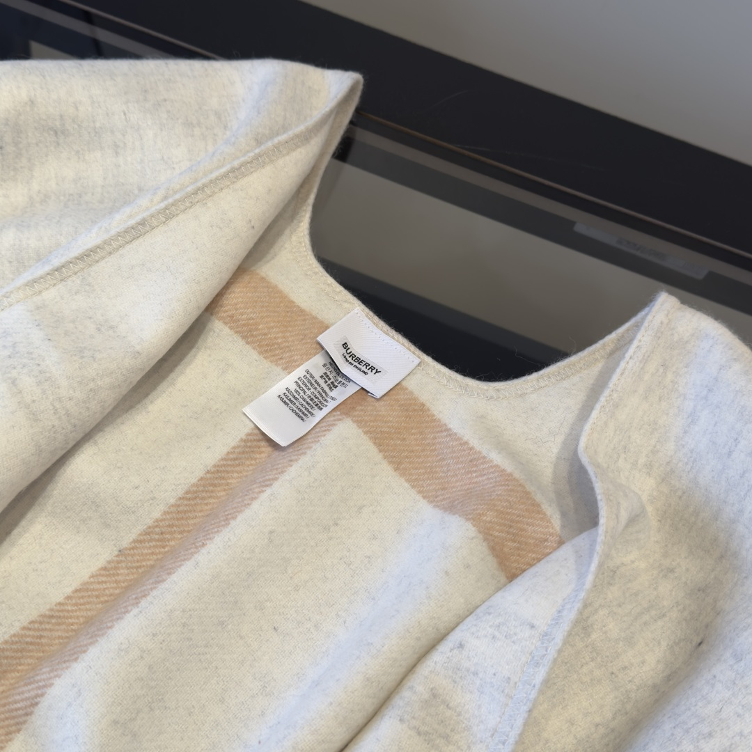 Elegant Burberry Inspired Double-Sided Cashmere Blend Plaid Cape Shawl