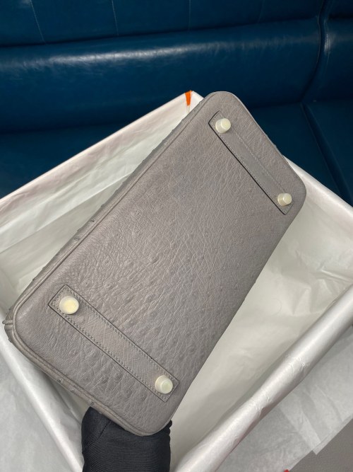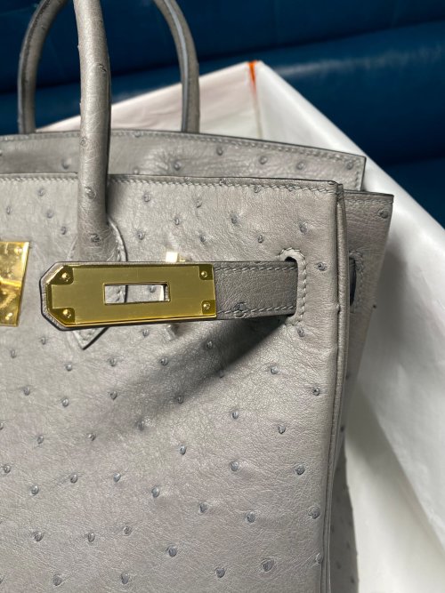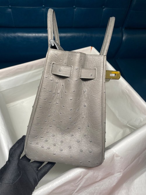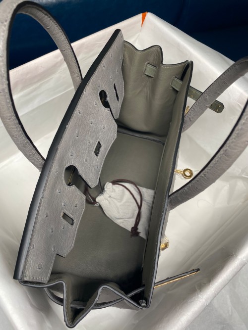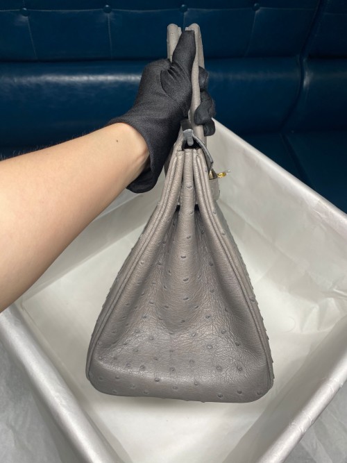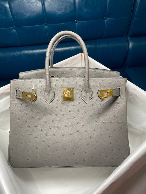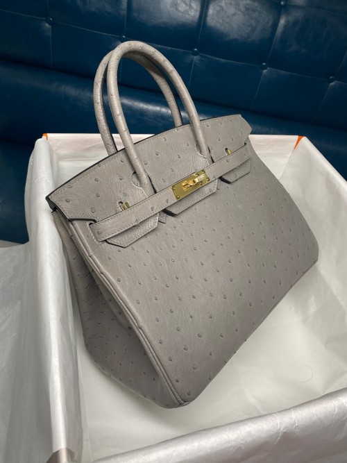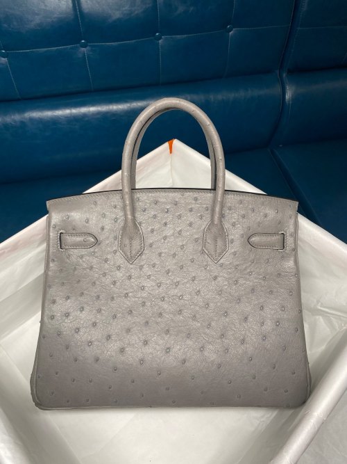 Elegant Ostrich Leather Birkin 30 Handbag - Iron Grey, Premium Quality