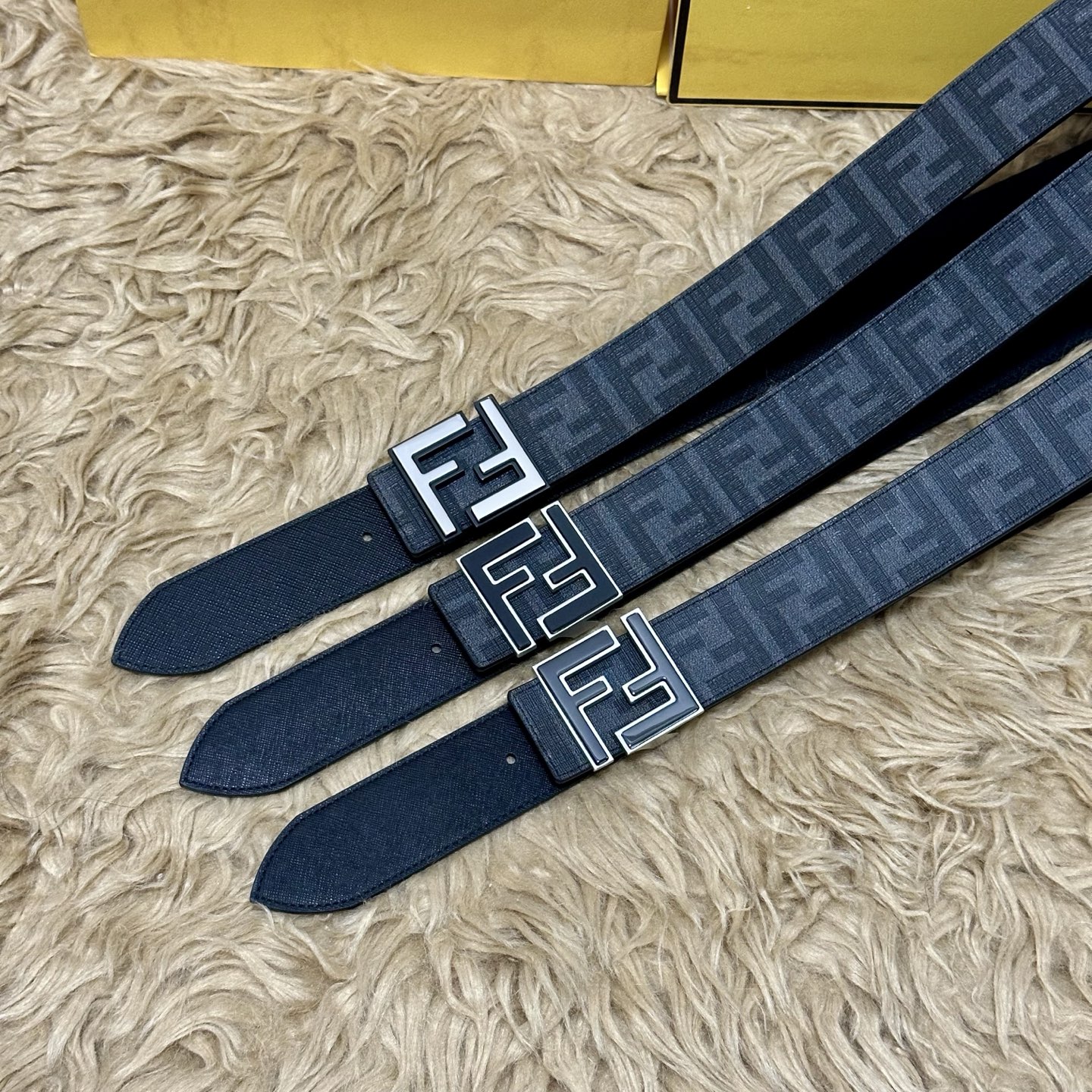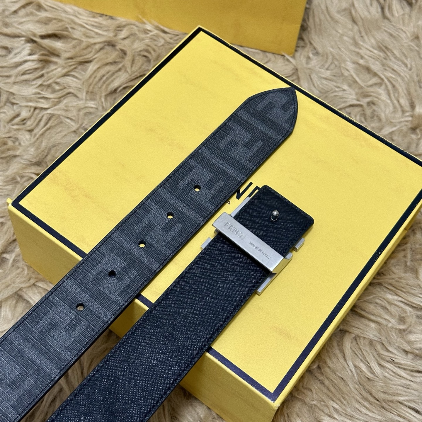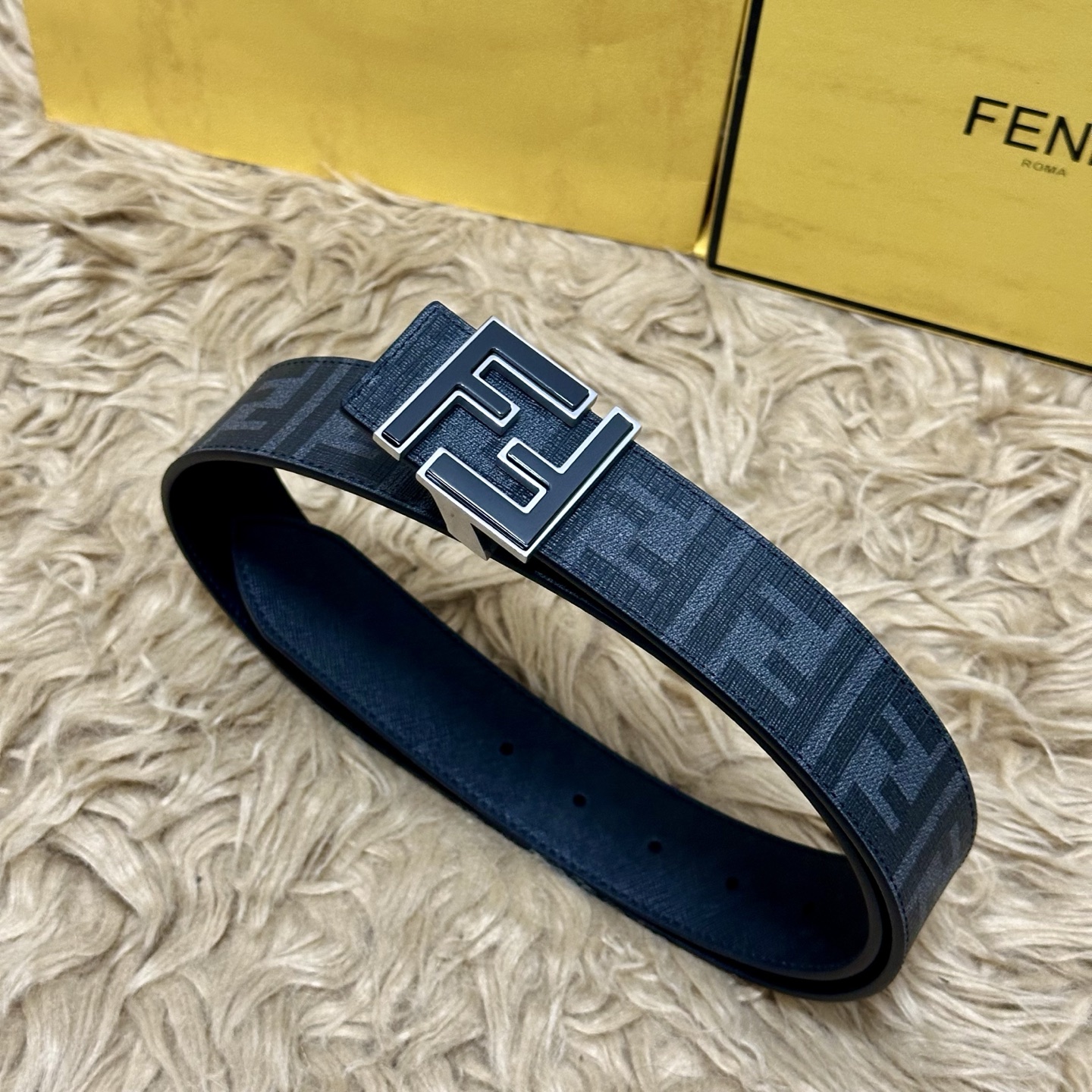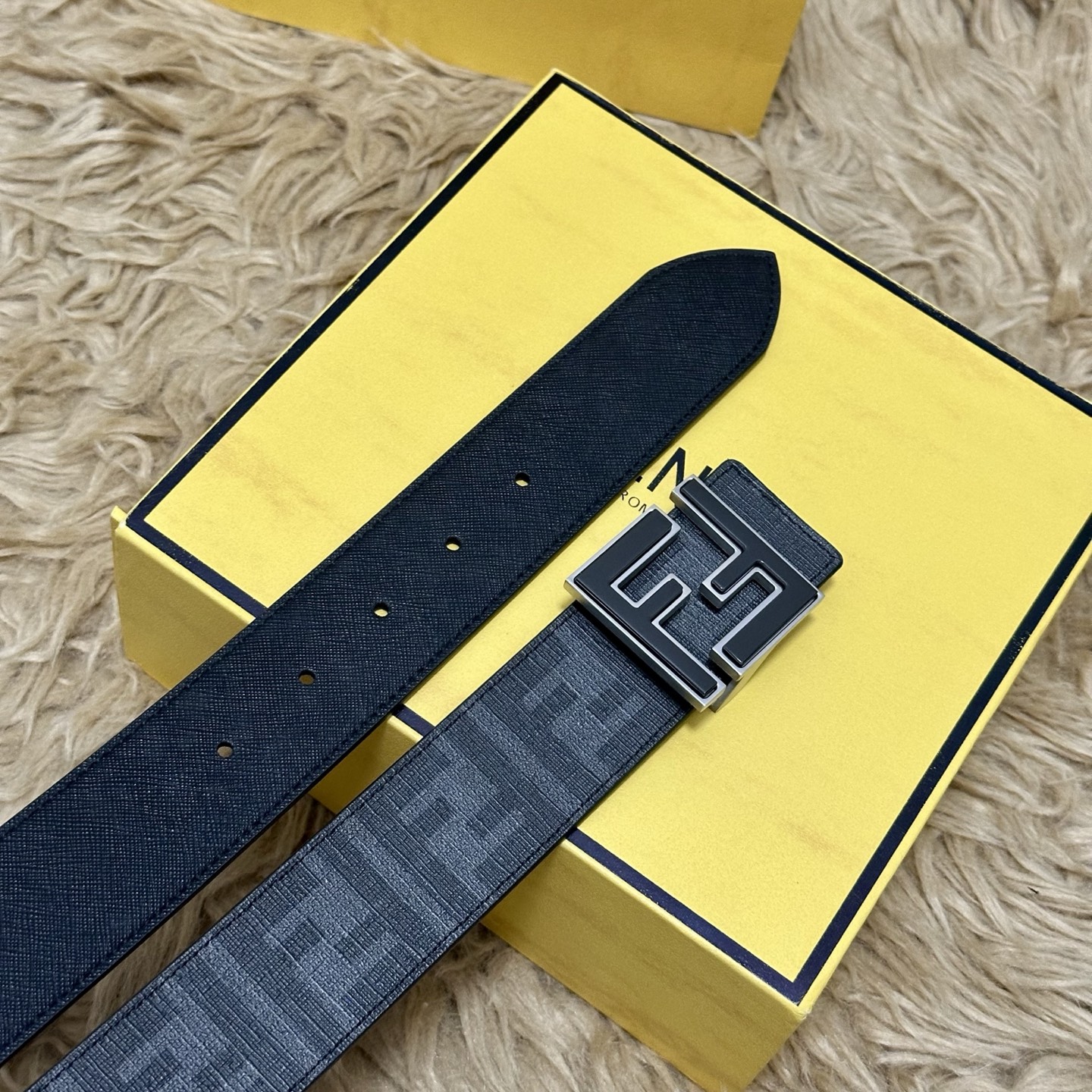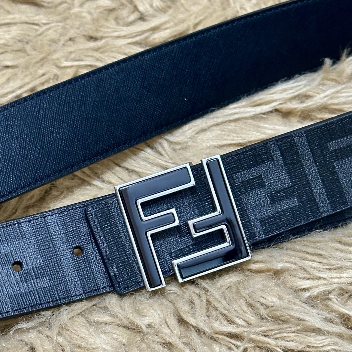 - Iconic FF logo buckle with black enamel finish.