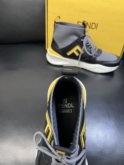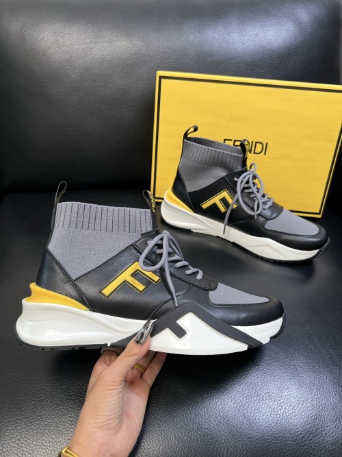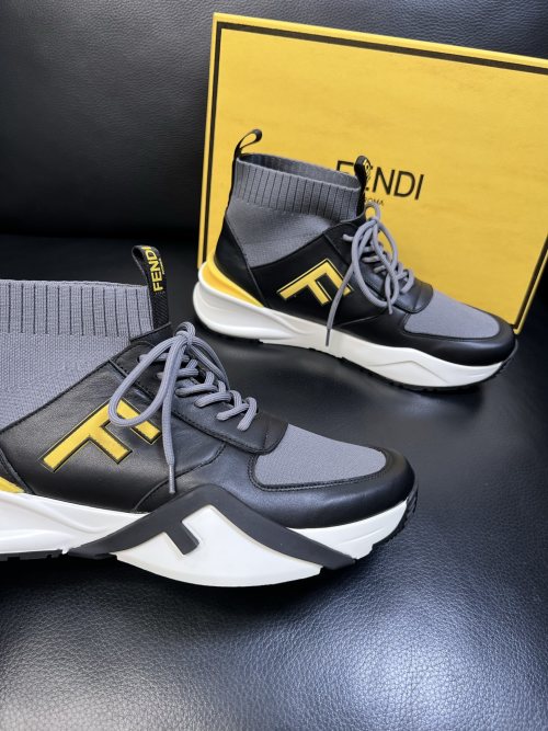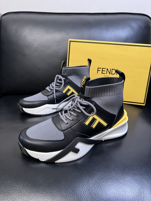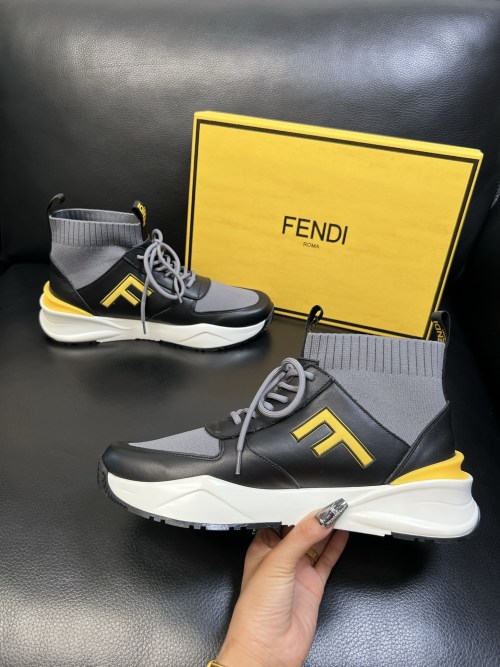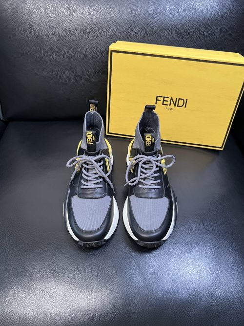Tags: Breathable Knit Sneakers, Designer Men's Sneakers, Fendi High Top Sneakers, Italian Leather Sneakers, Luxury Streetwear Shoes