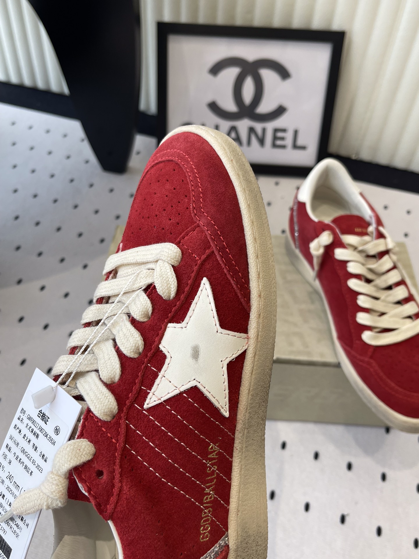 Golden Goose Ball Star Red Suede Sneakers with White Star Patch