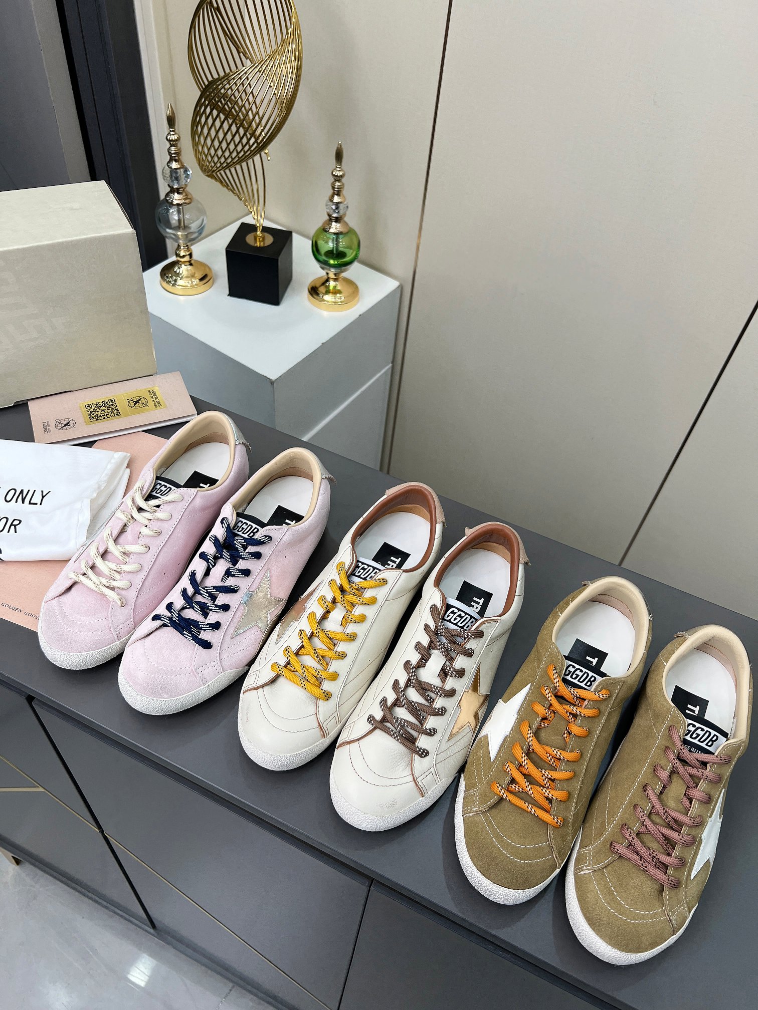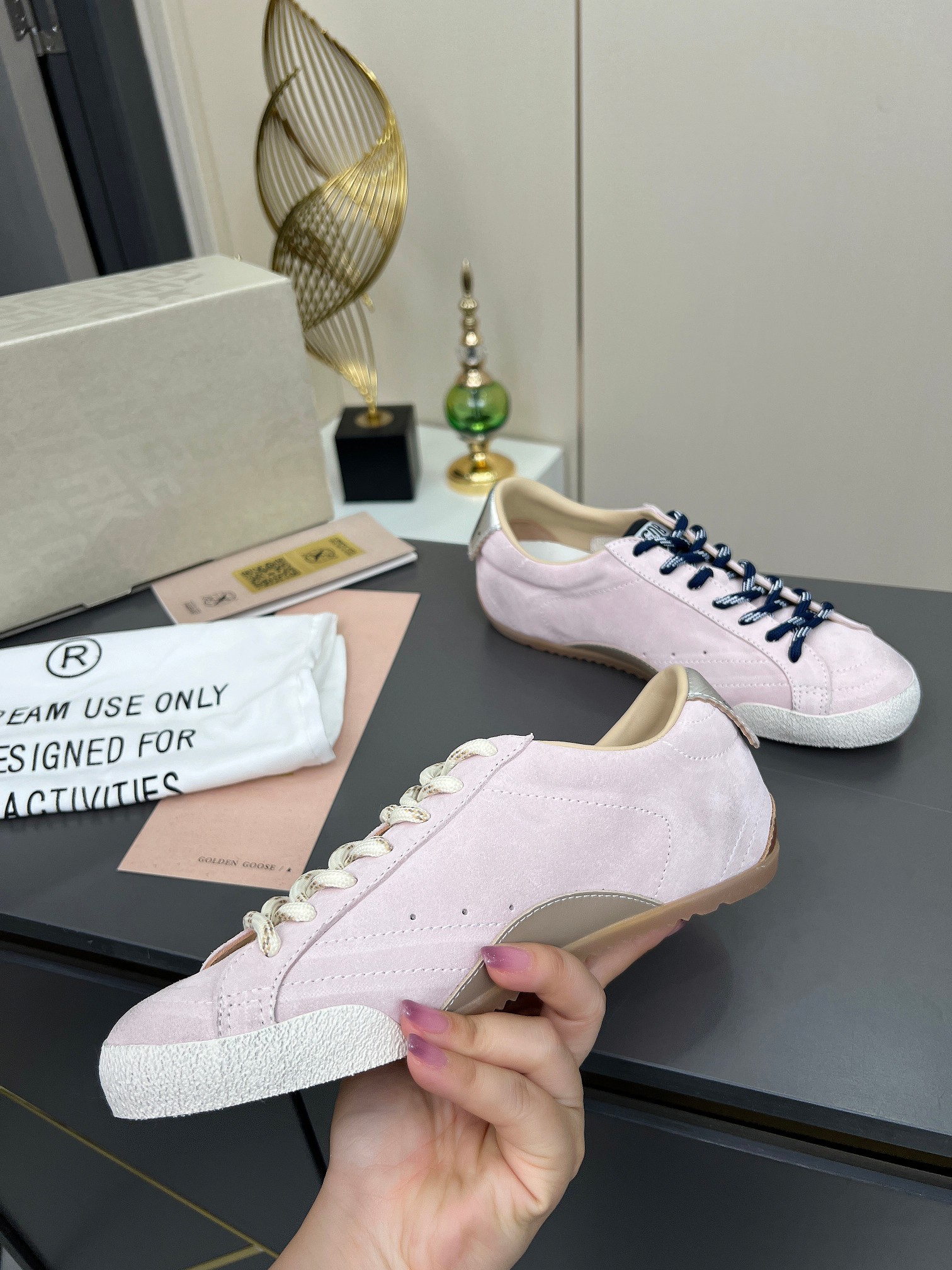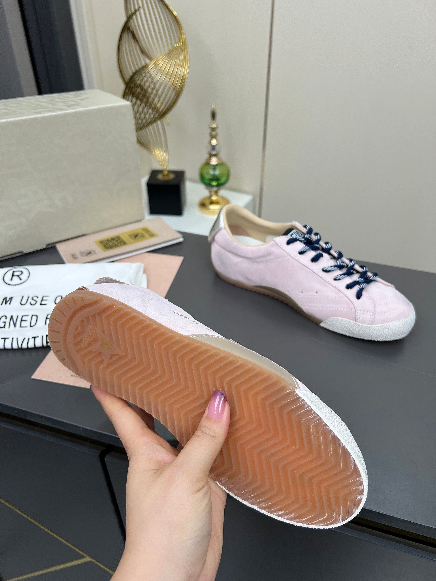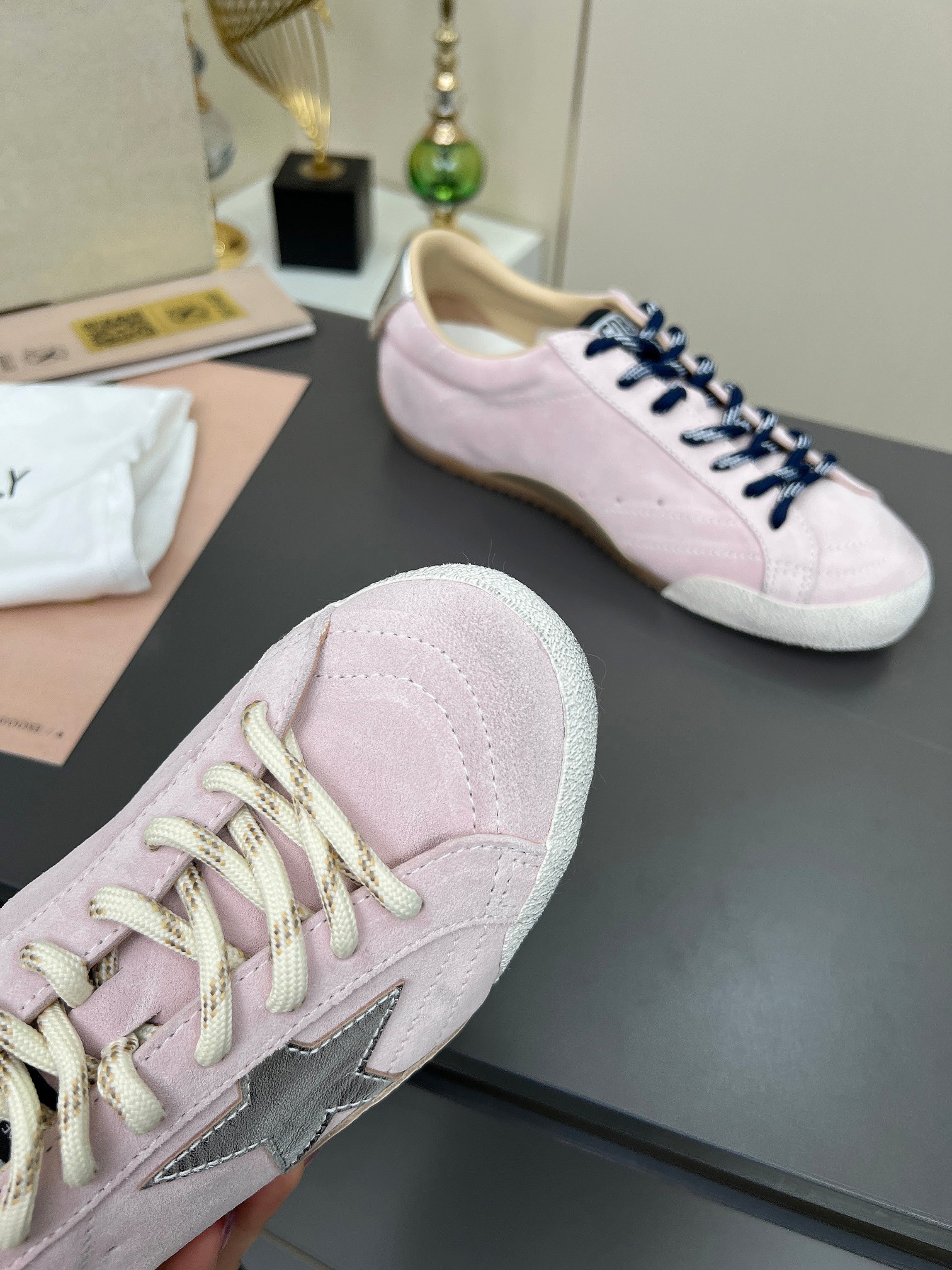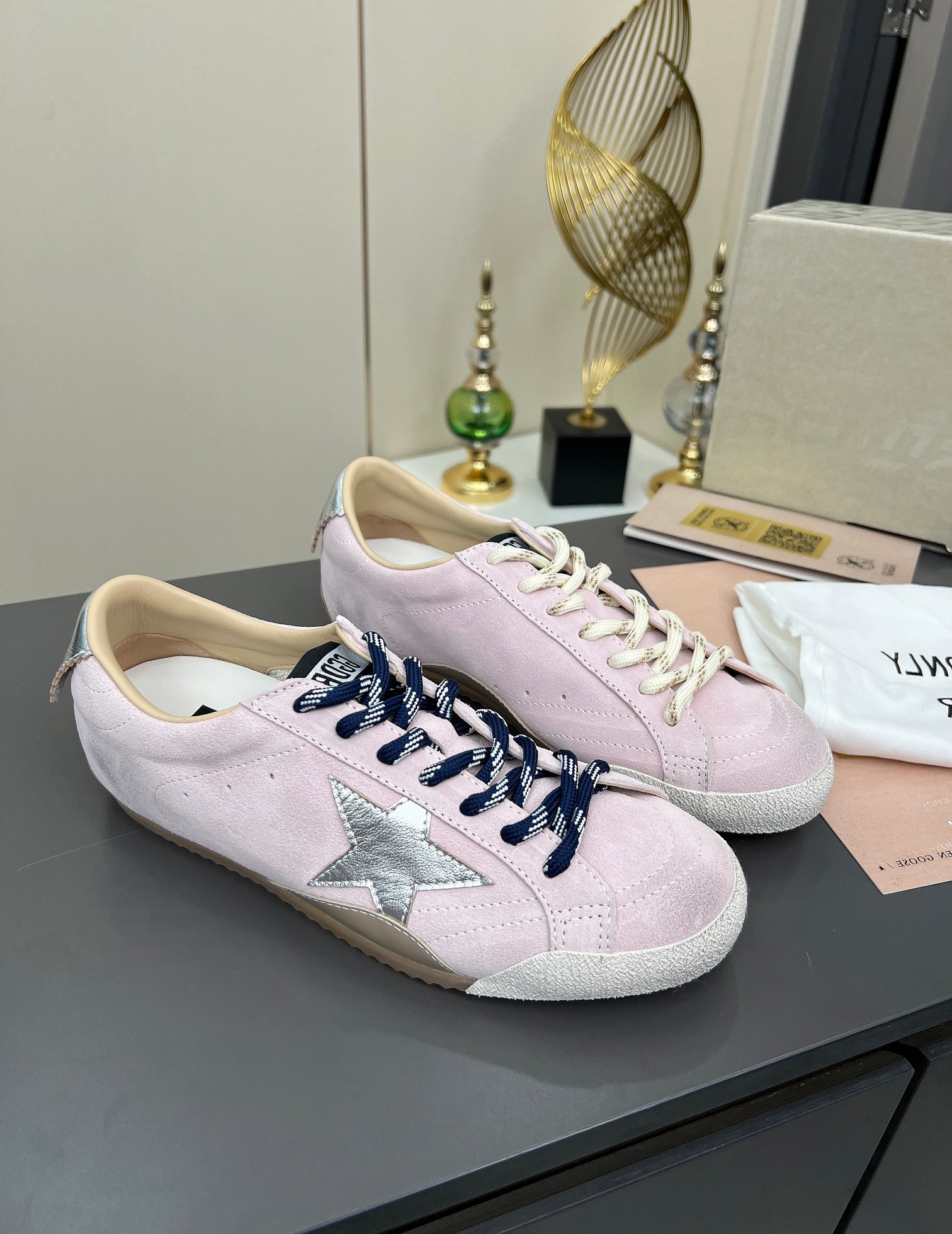 I'm obsessed with these Golden Goose sneakers! I love the pink color and the signature star. They're super comfortable and easy to style with any outfit. I'm so glad I made this purchase!