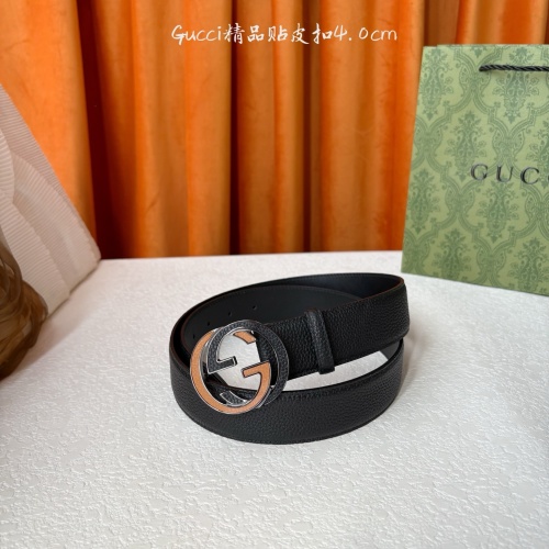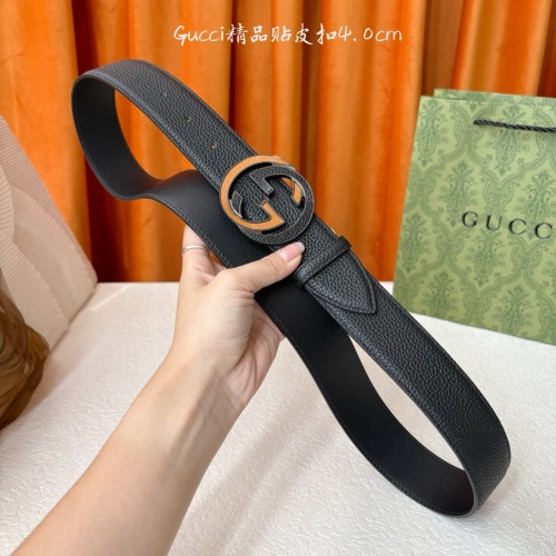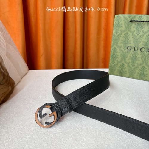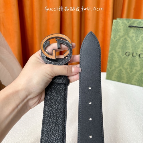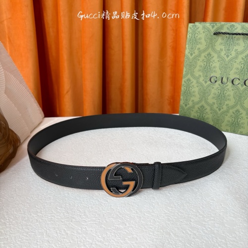 Gucci Black Leather Belt with Interlocking G Buckle, 4.0 cm Width