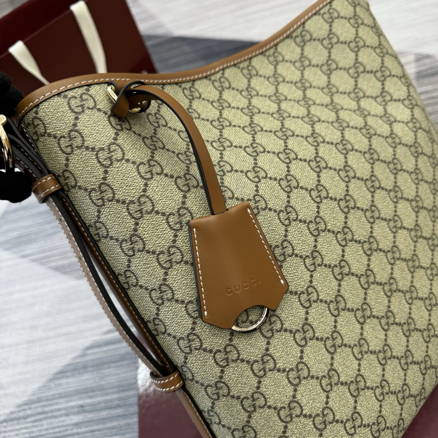Tags: Brown PVC Bag, Designer Bucket Bag, Everyday Designer Bag, gucci bucket bag, Gucci Emblem Bag, Luxury Handbag