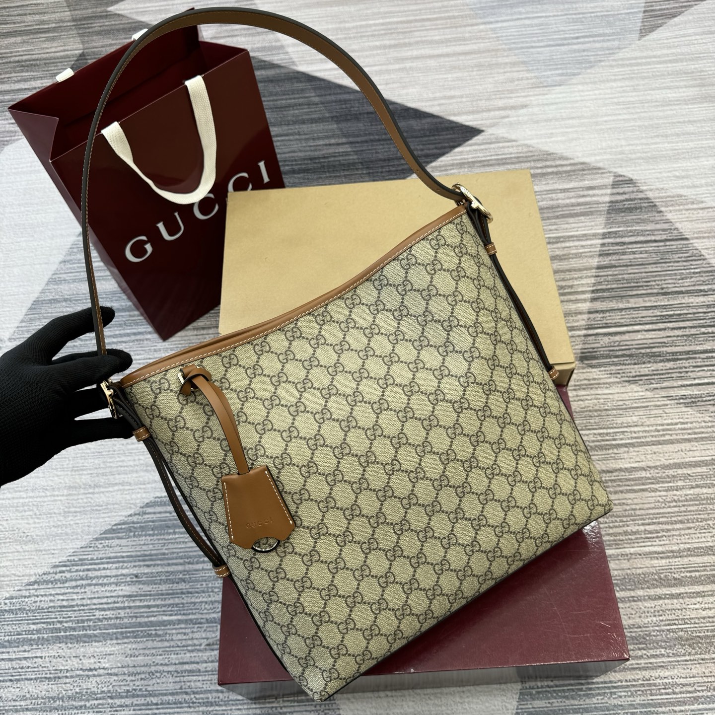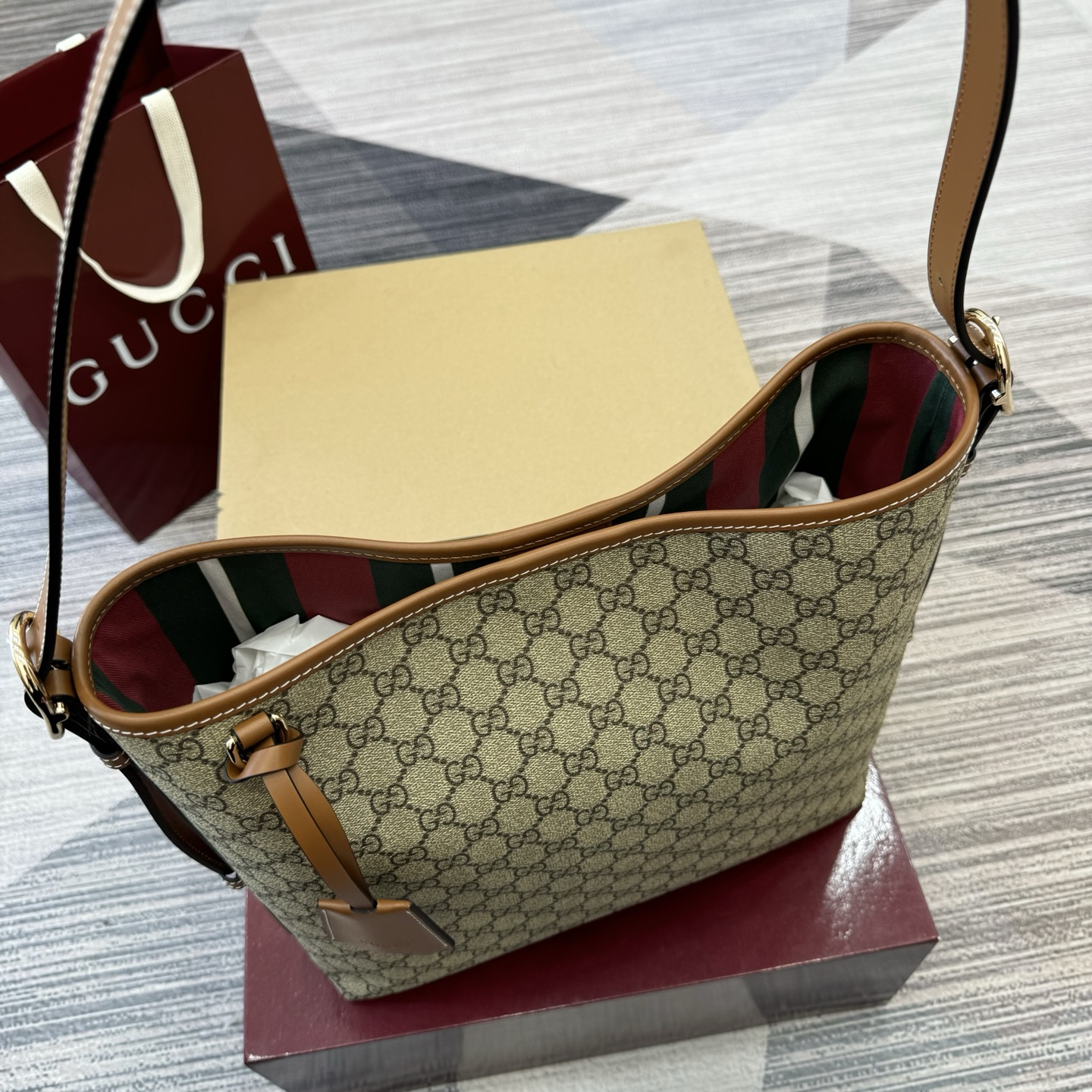 Gucci Emblem Bucket Bag Brown PVC, 30.5cm - Elegant & Functional