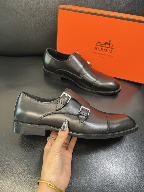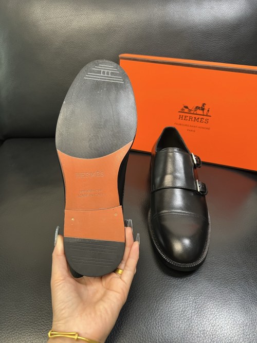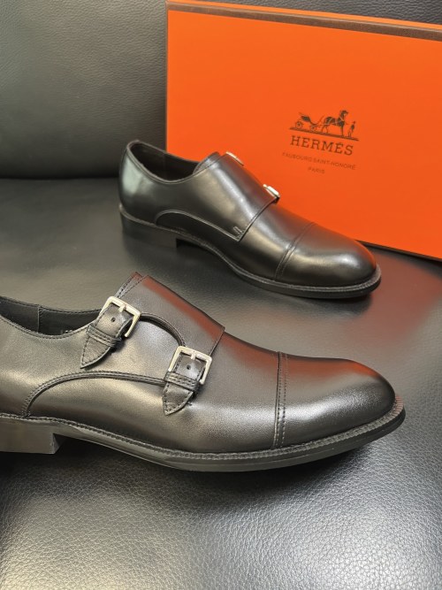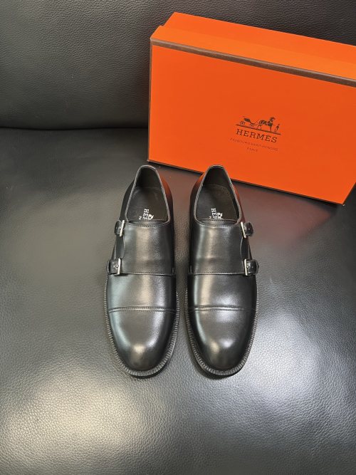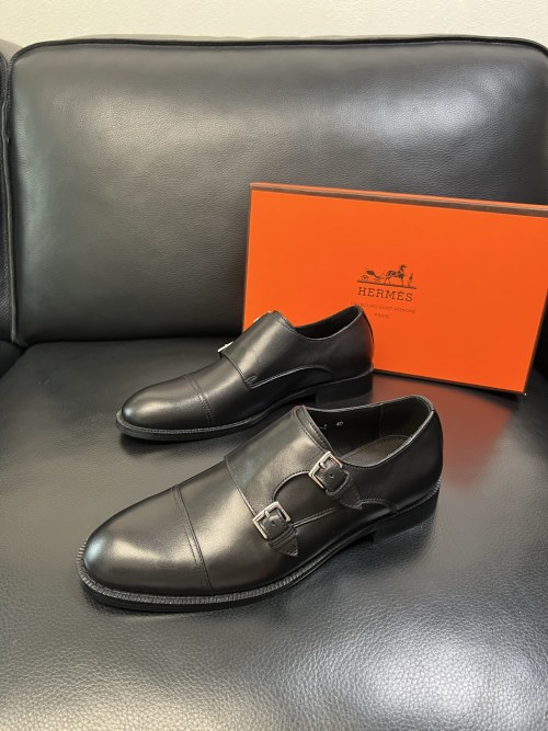 Tags: Black Dress Shoes Men, Formal Leather Footwear, Hermes Monk Strap Shoes, Italian Leather Shoes, Men's Leather Dress Shoes