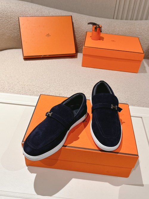 Hermes Men's Blue Suede Loafers with Buckle Detail-Timeless Elegance