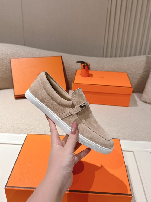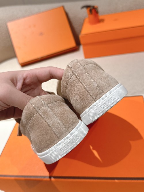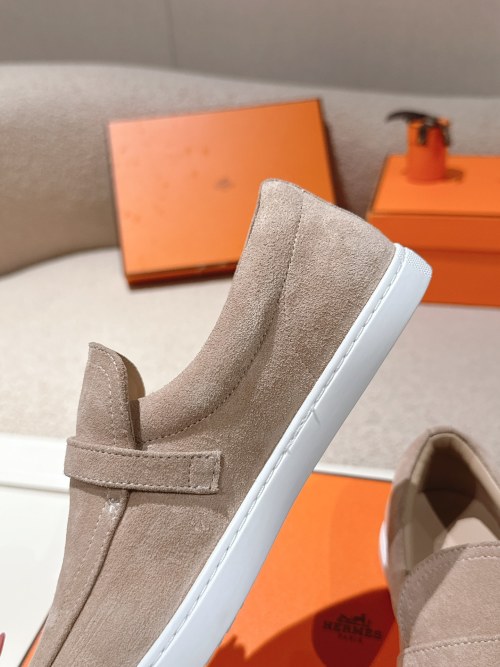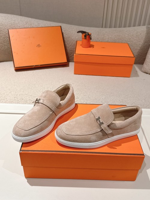 Hermes Men's Suede Leather Loafers, Slip-On Style, Beige, Size 35-45