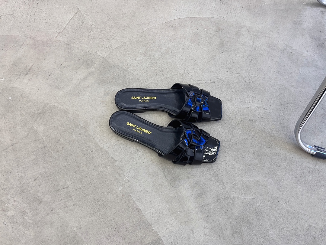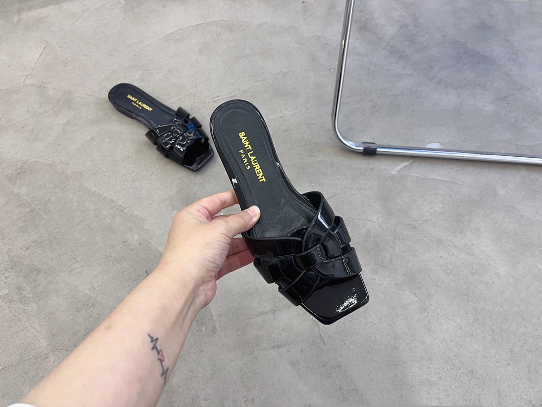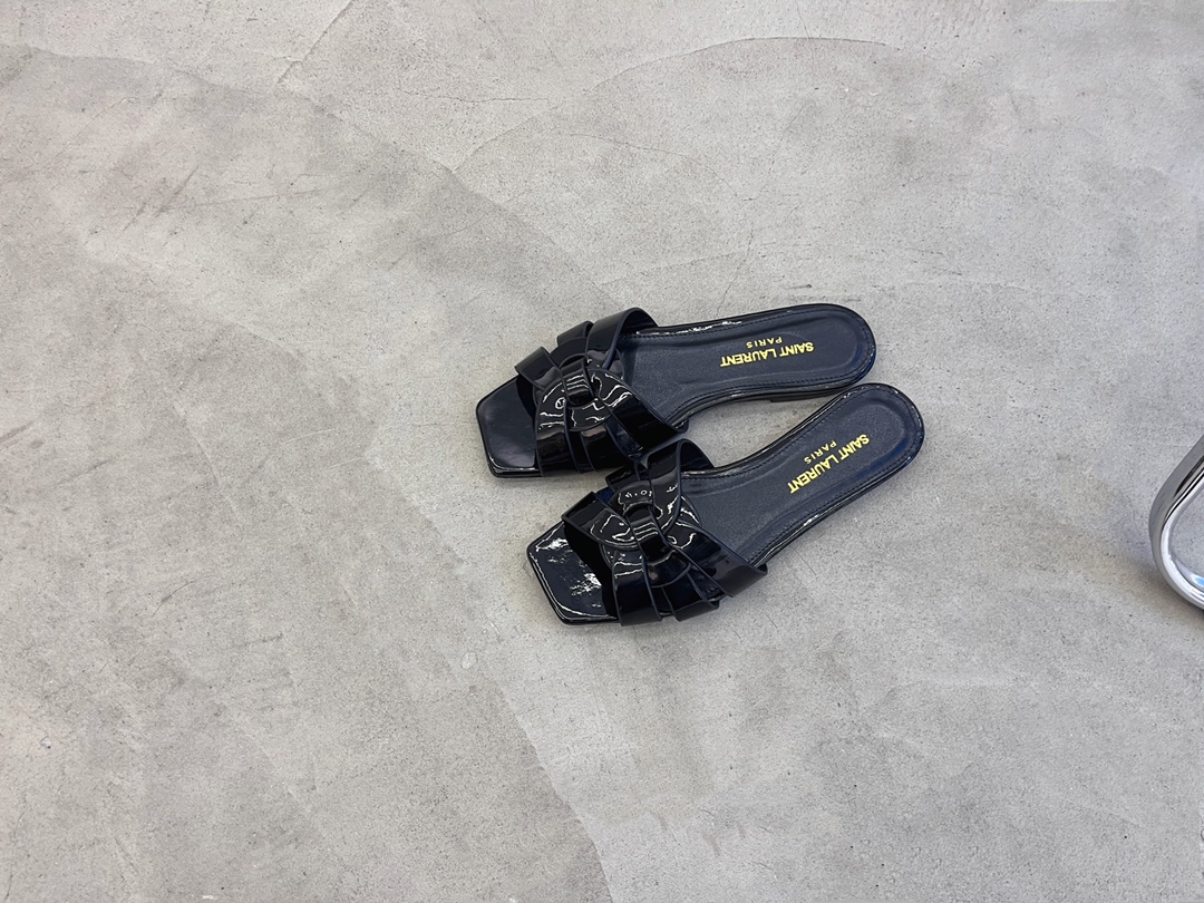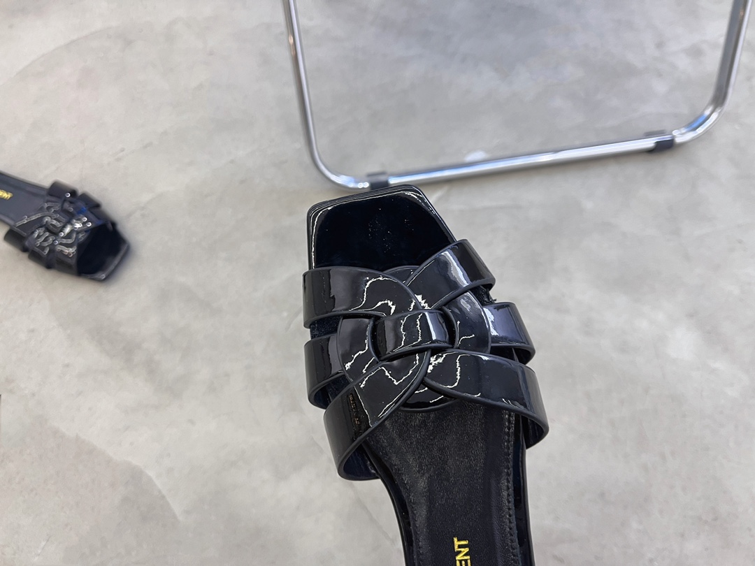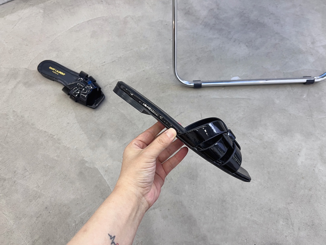 Saint Laurent French elegant YSL classic woven flat slippers Upper: imported cow patent leather Inner: transdyed cowhide Feet: transdyed cowhide Sole: Italian leather outsole Special counter packaging SIZE: 35-42 (40 4