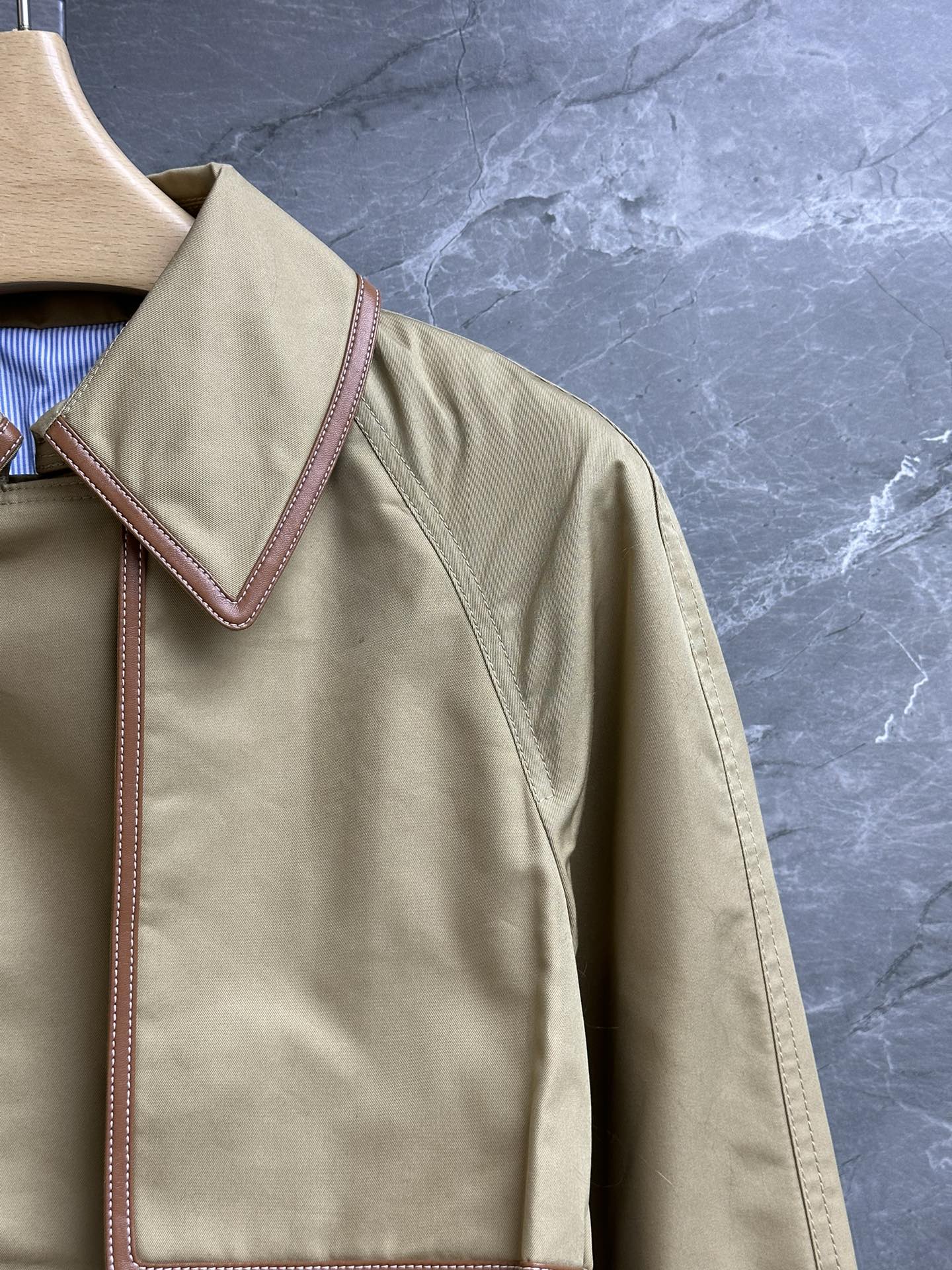 👏👏👏New autumn and winter styles are here🔥🔥🔥Loewe Irregular Windbreaker 2021 Autumn and Winter Series Temperament lapel neckline Leather binding design Full of high-end feel Customized windbreaker fabric Smooth and full drape Exquisite workmanship enhances the windbreaker