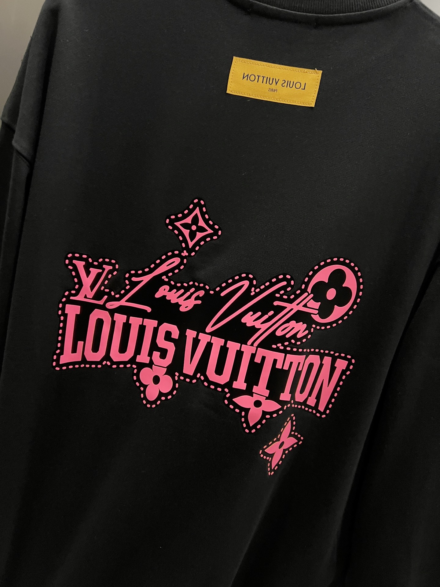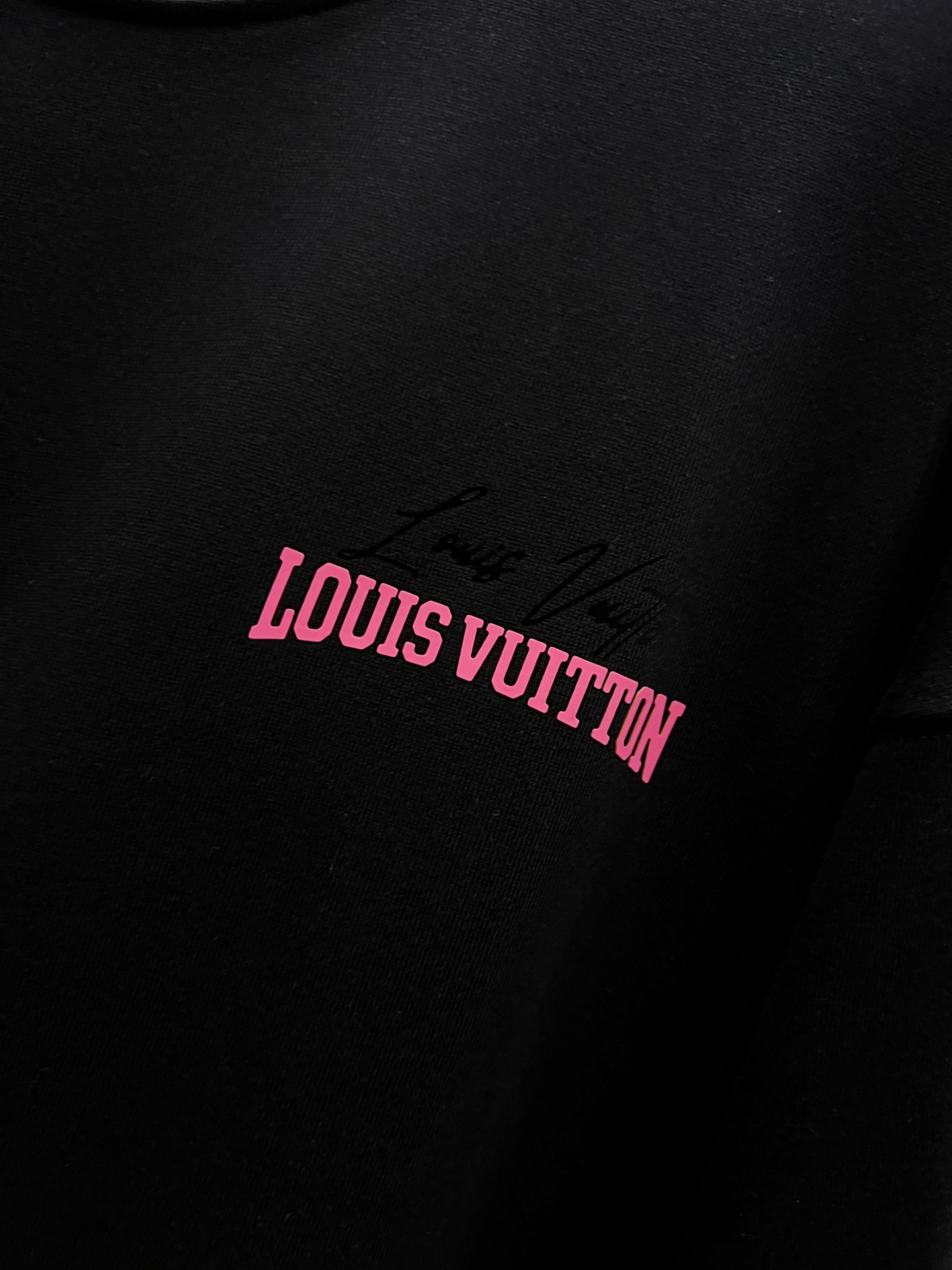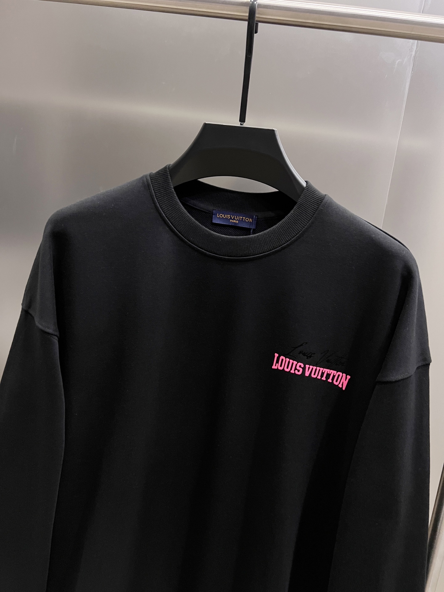 Louis Vuitton 2025 FW Pink Logo Black Sweatshirt, Unisex Cotton Pullover