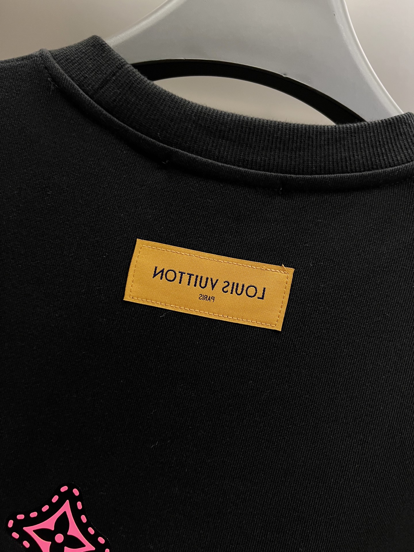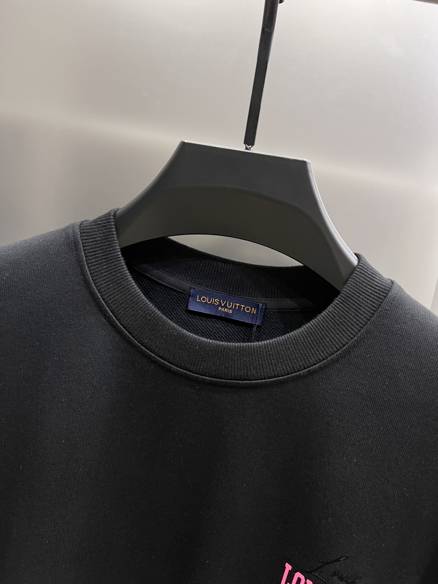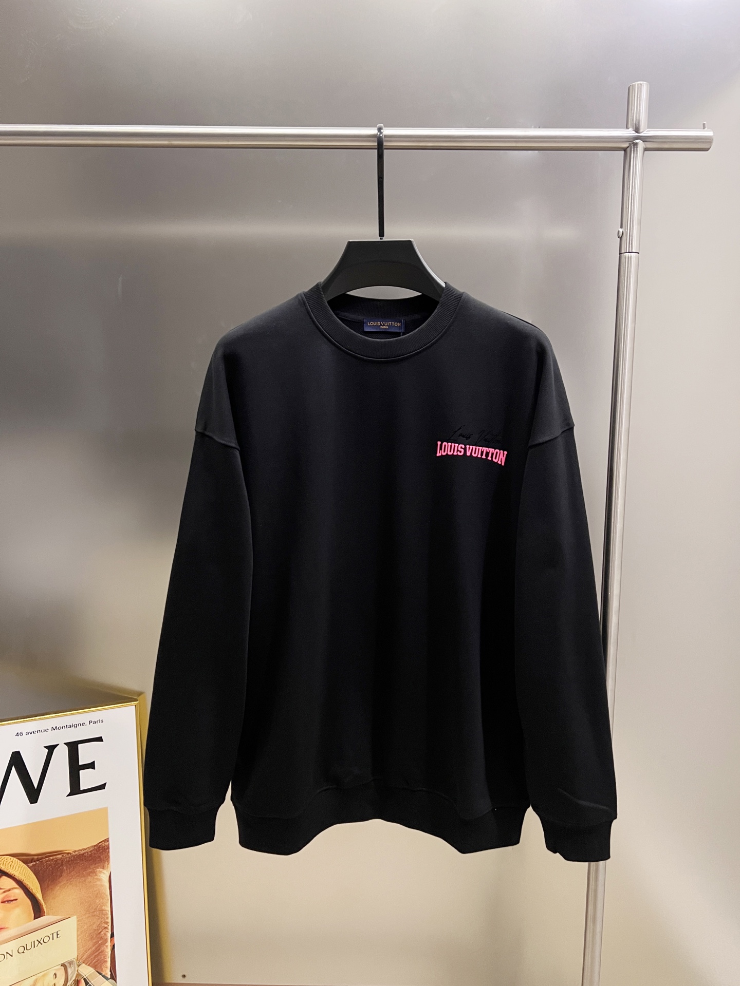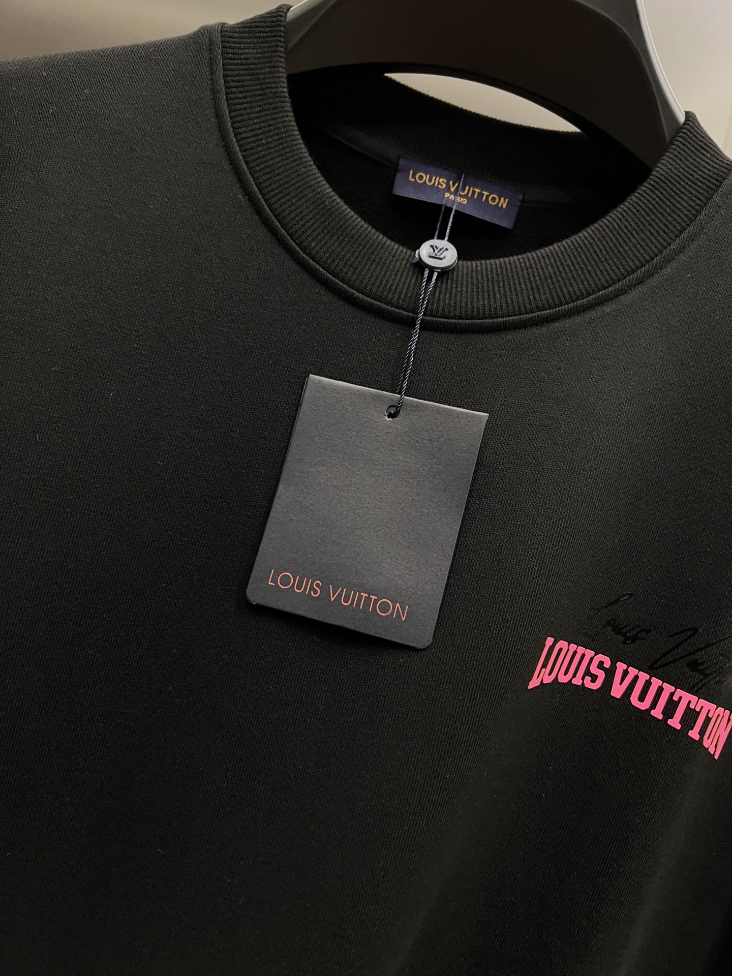 Louis Vuitton 2025 FW Pink Logo Black Sweatshirt, Unisex Cotton Pullover