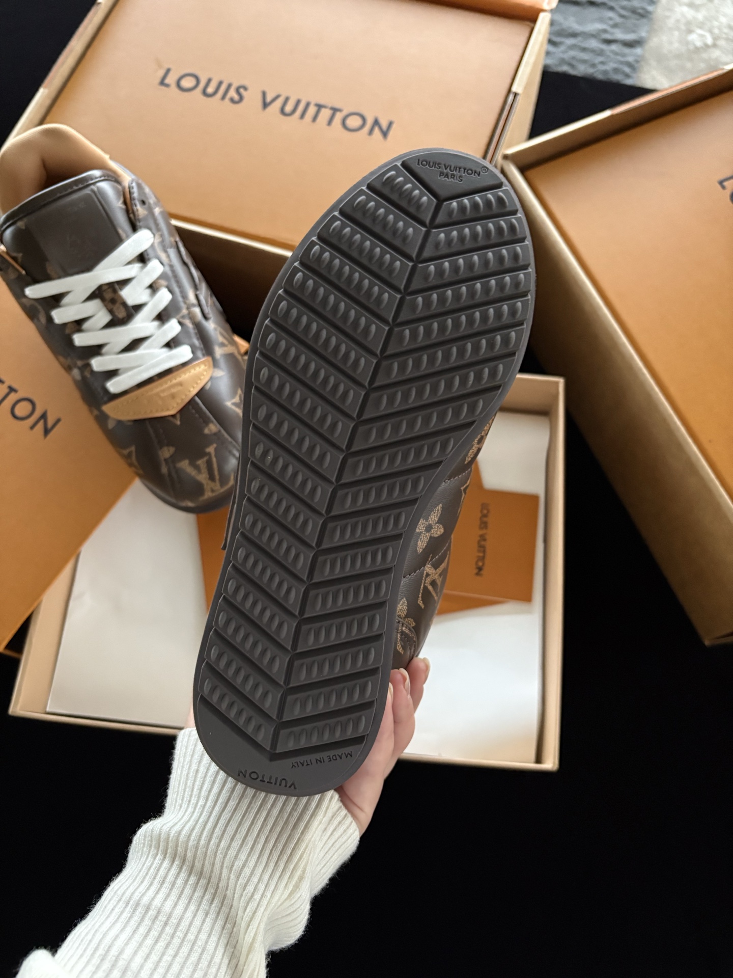 These sneakers are perfect for adding a touch of luxury to any outfit. Whether you're dressing up for a special occasion or keeping it casual, these Louis Vuitton sneakers are sure to turn heads.