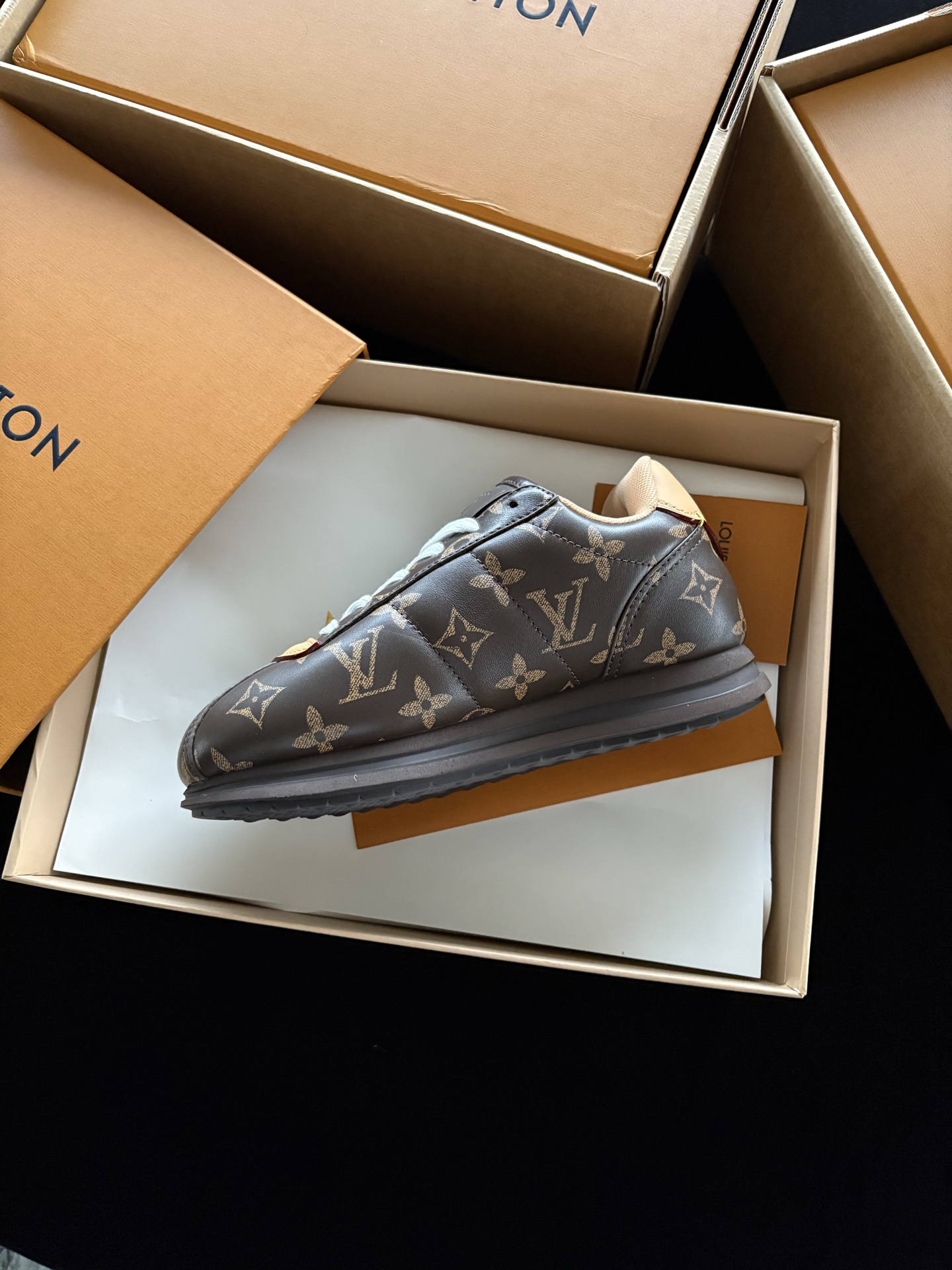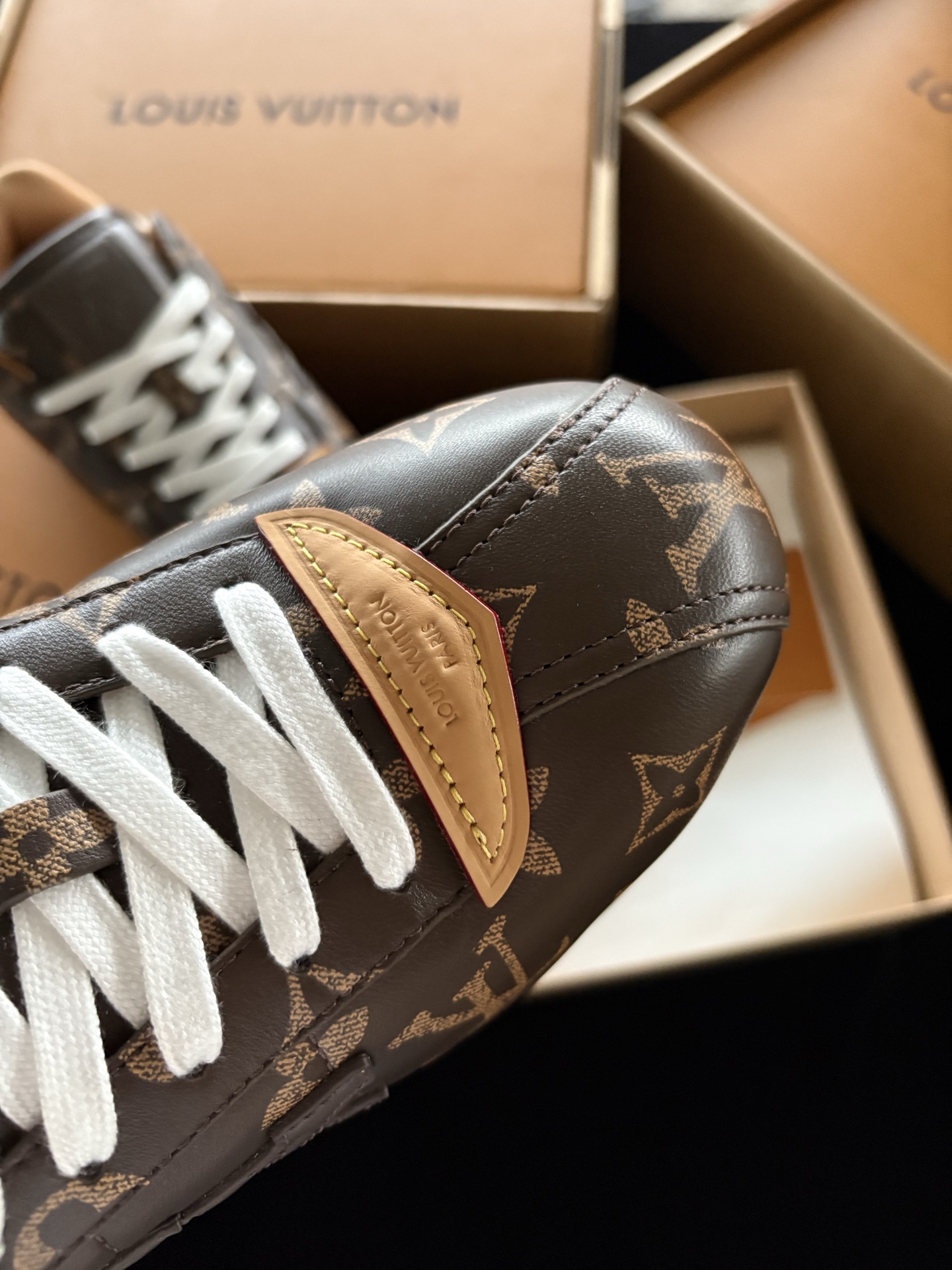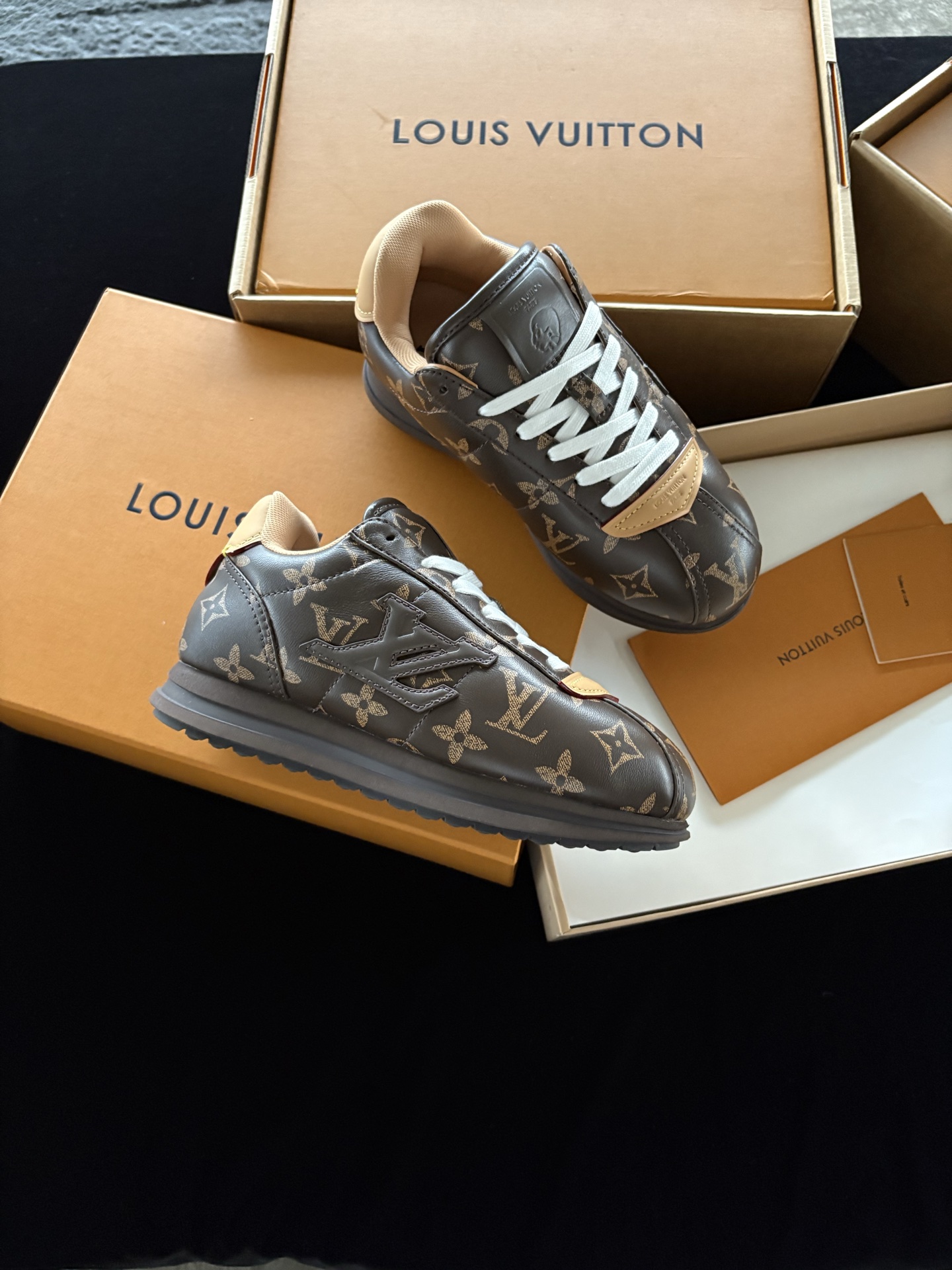 Tags: Designer Monogram Shoes, Louis Vuitton Sneakers, Luxury Leather Sneakers, Retro Style Sneakers