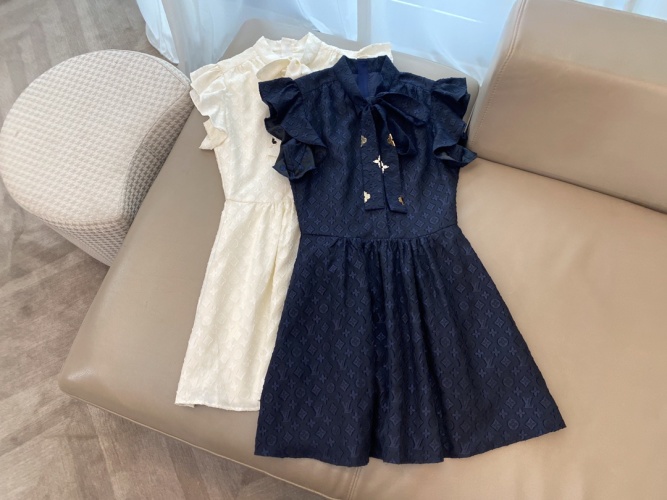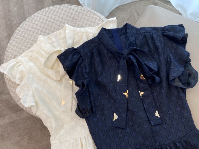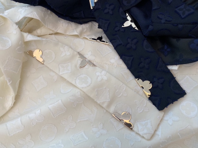 New 21SS LV classic presbyopia pattern flocking round neck tie metal casual dress custom velvet material iconic classic letter flocking effect jacquard comes with fashionable gloss matching good single product drape super friendly 2 colors 3 sizes