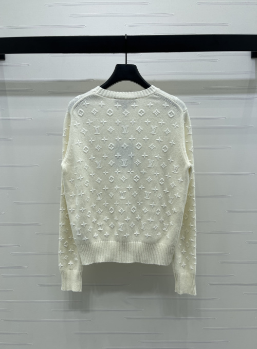 Tags: Cashmere Embroidered Sweater, Designer Jacquard Knitwear, High End Fashion Sweater, Logo Print Pullover, Louis Vuitton Sweater, Luxury Women's Sweater
