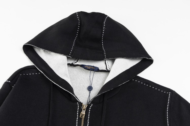 Elevate your style with this Louis Vuitton wool-blend zip-up hoodie. Features inlaid design, comfortable fit, and premium quality. Perfect for couples.