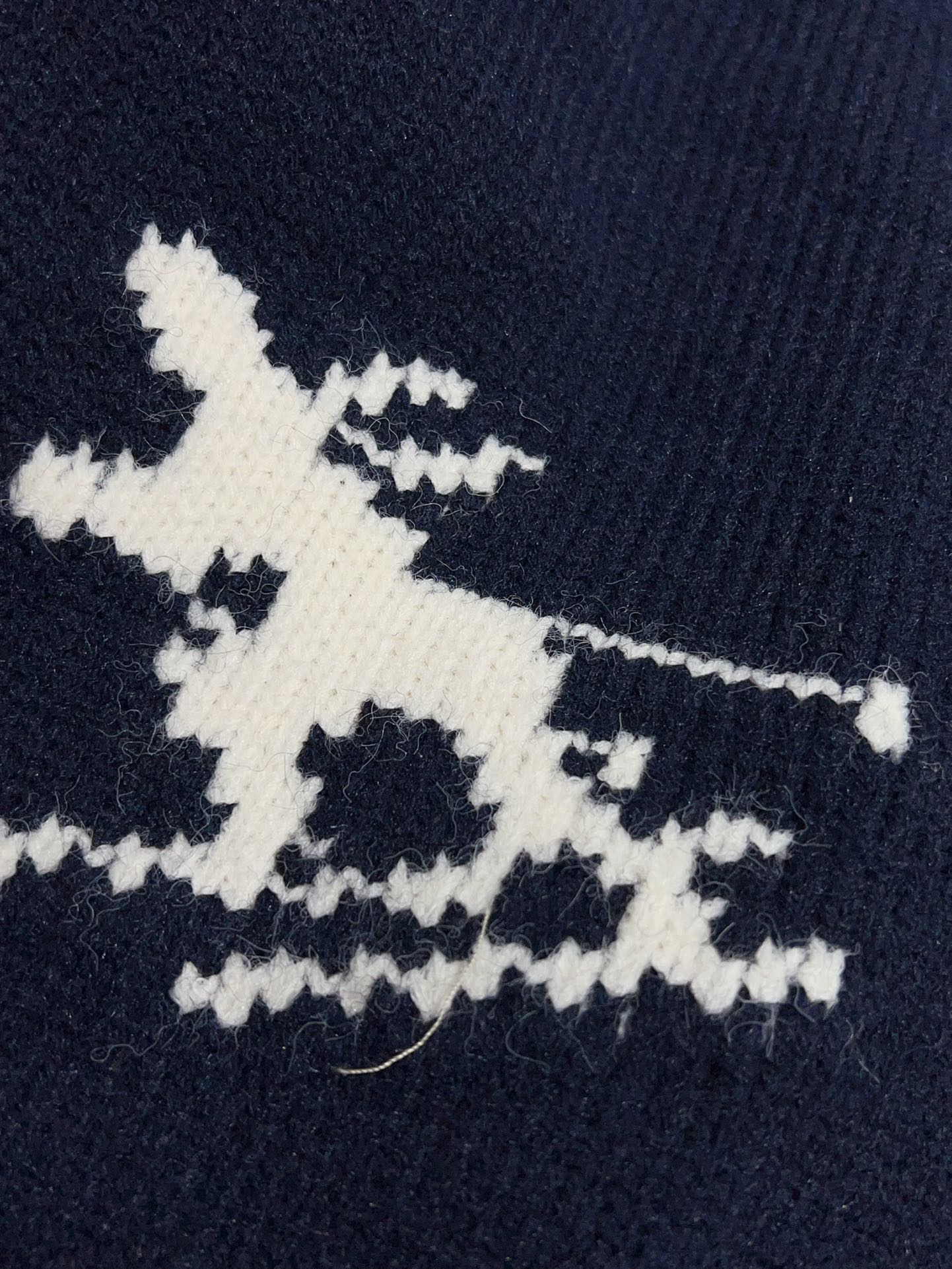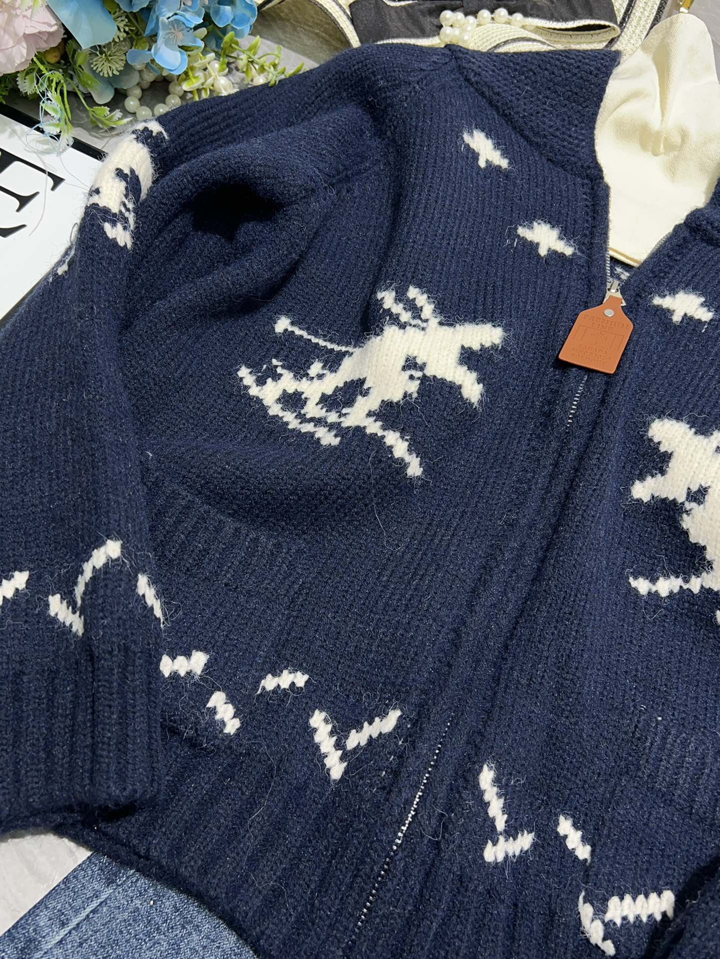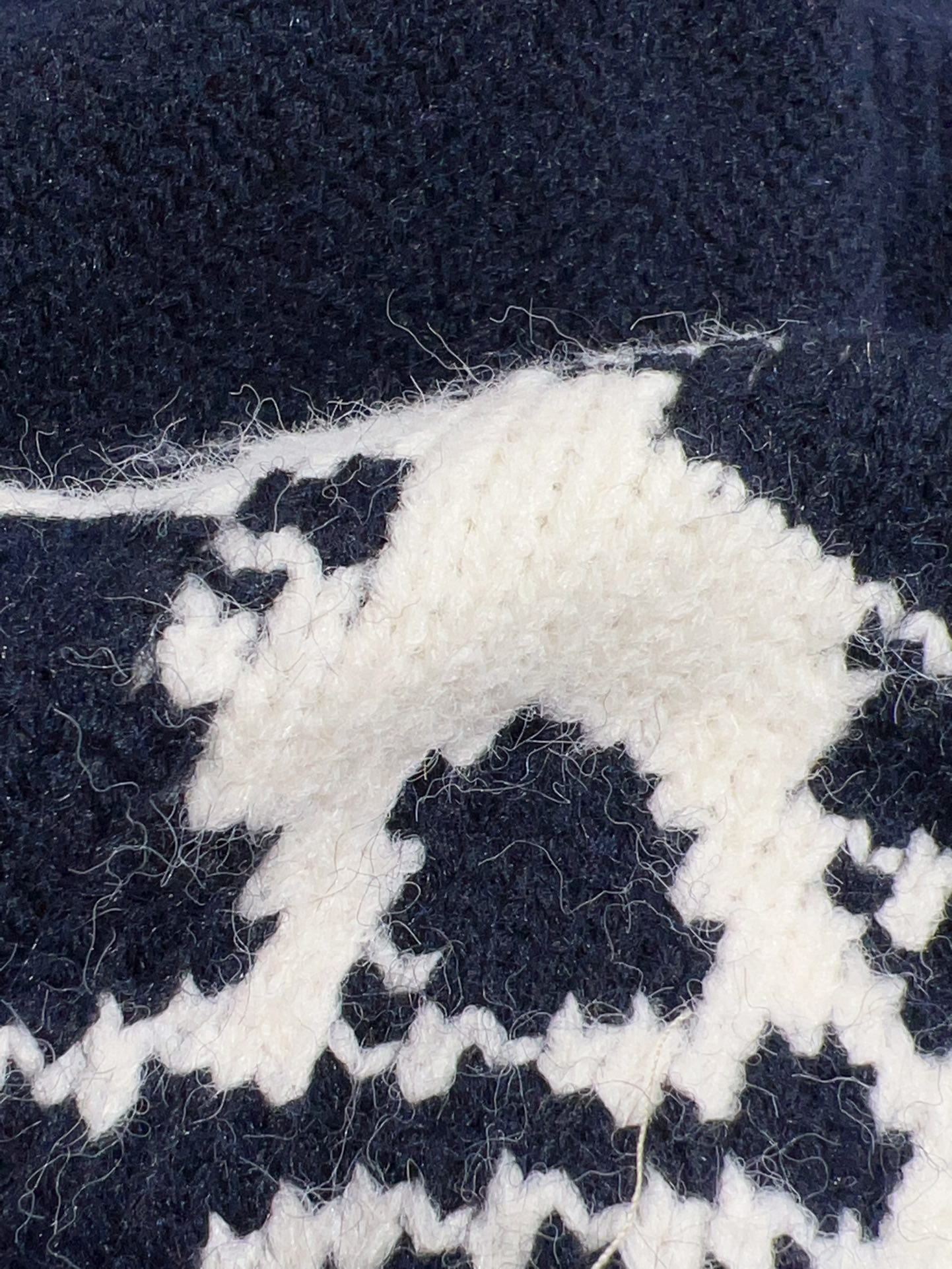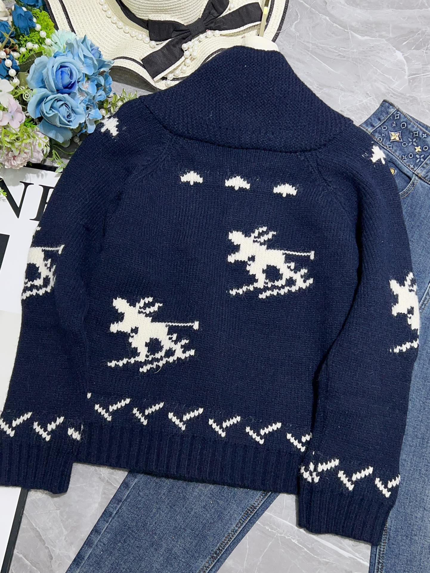 Elevate your winter style with this Louis Vuitton-inspired knitted cardigan featuring a charming reindeer pattern. Soft, warm, and perfect for layering.