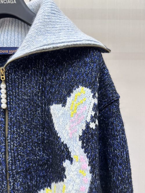 Tags: Cherry Blossom Knitwear, Designer Zip Up Sweater, Embroidered Knit Jacket, Koi fish jacket, Louis Vuitton Sweater, Luxury Fashion Sweater