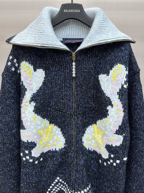 Elevate your style with this Louis Vuitton zip-up sweater, featuring a unique Koi and Cherry Blossom design. Soft, comfortable cotton blend with detailed embroidery.