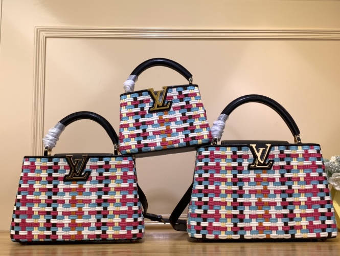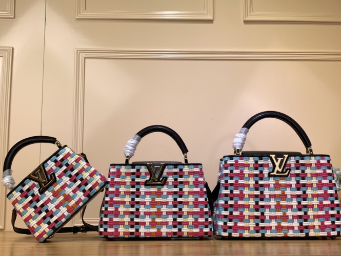 [Capucines Handbag] M22270 Color (woven) This colorful Capucines BB handbag is woven from strips of hot-pressed coated fine canvas, presenting a lustrous woven structure. leather