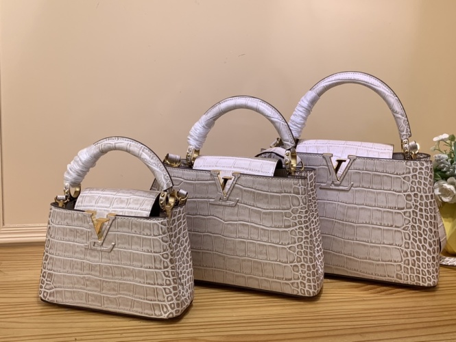 [Capucines Handbag] N48865 Light Gray Gradient (Cow Leather Pressed Crocodile Pattern) Combination Picture